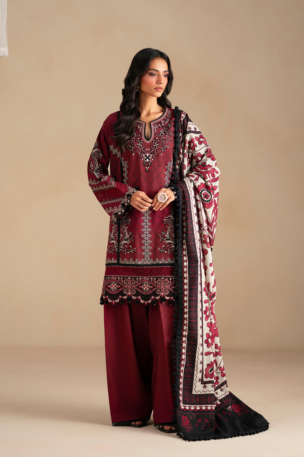 -Embroidered Printed L/W Khaddar Sleeves 2 Pcs