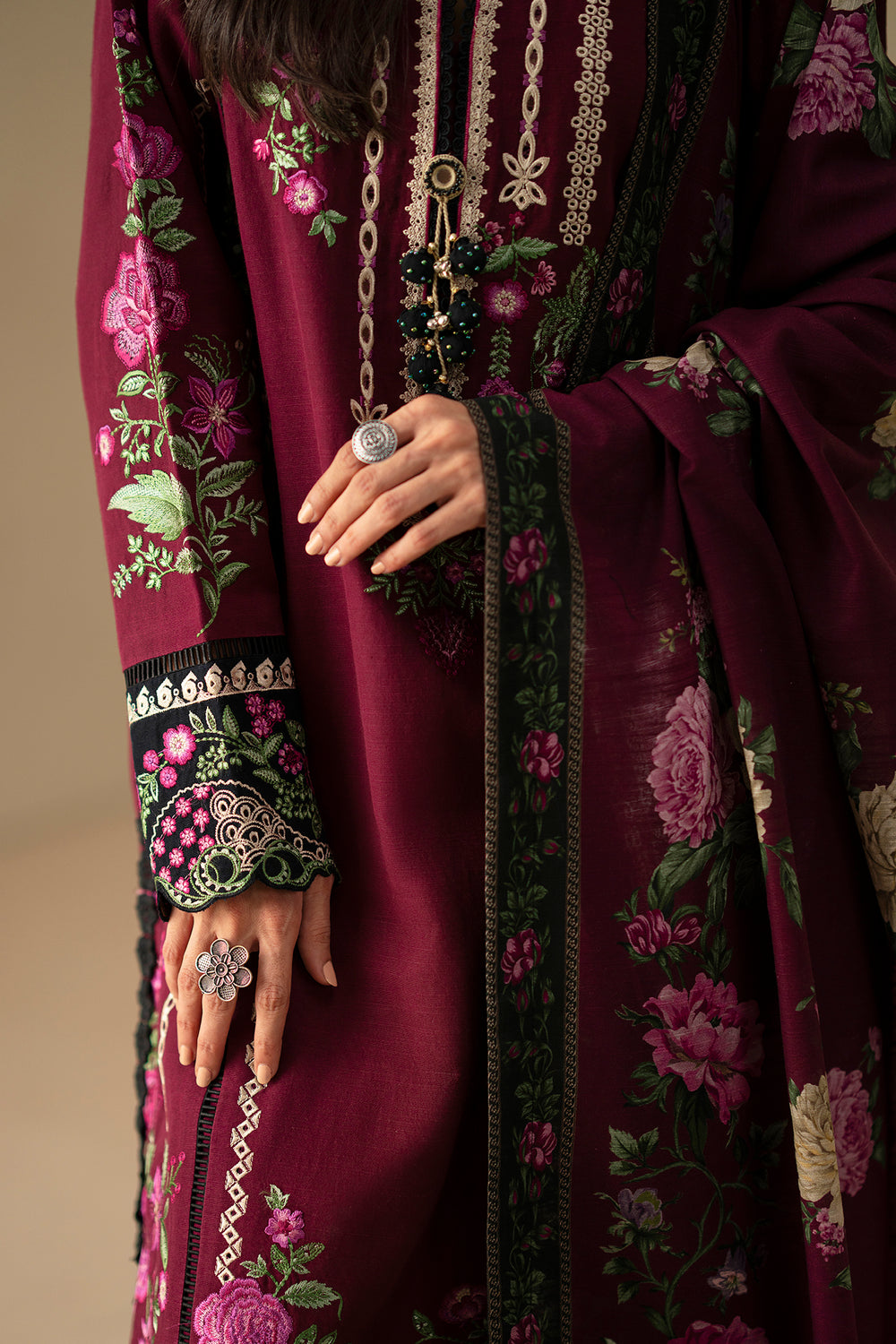 Note: Laces and embellishments are not included with unstitched articles.
