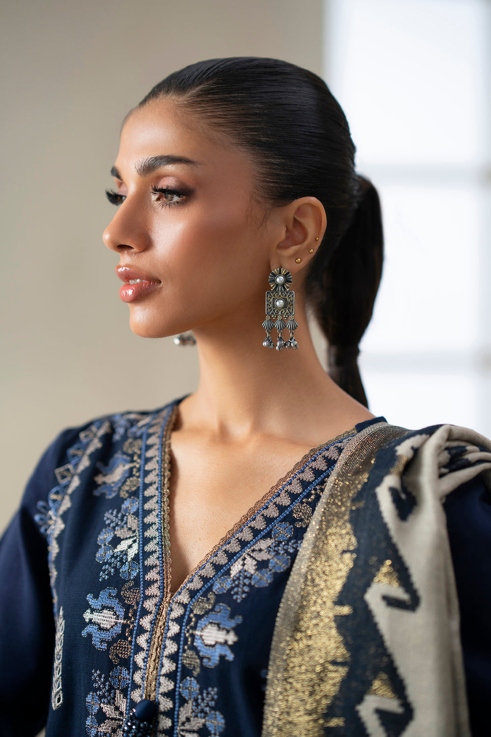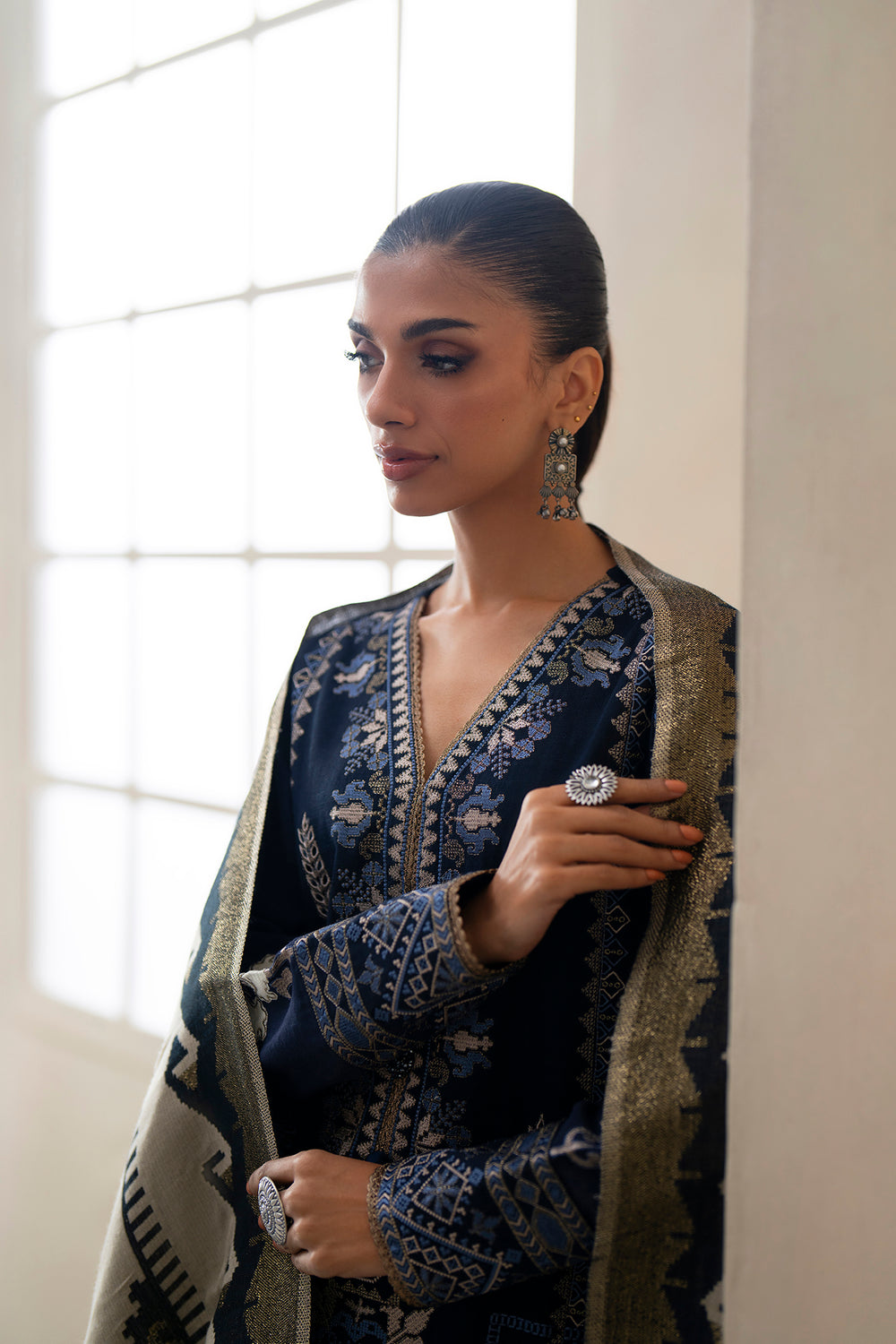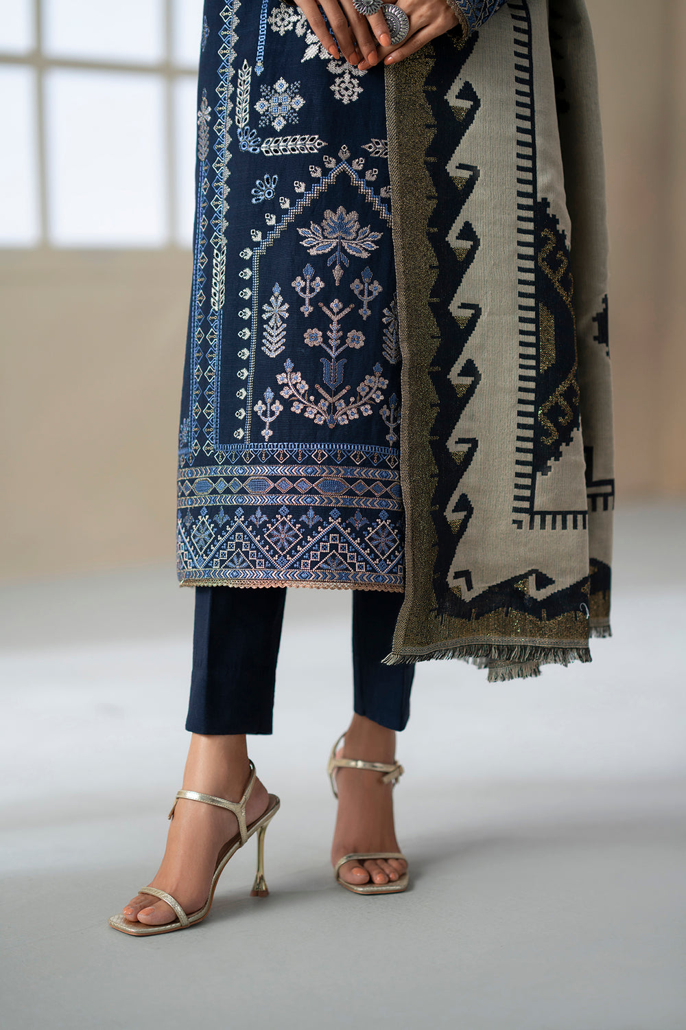 -Embroidered Khaddar Hem + Sleeve Border 1 Pc