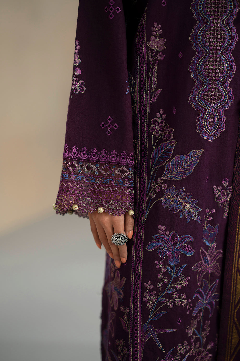 -Embroidered Dyed Khaddar Shirt front Center Panel 1 Pc