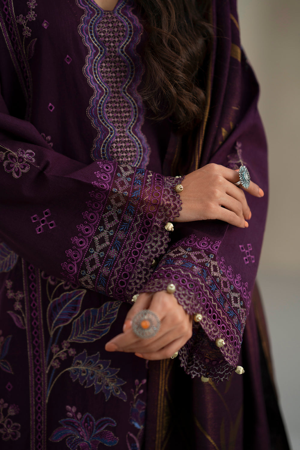 -Embroidered Dyed khaddar Sleeves 2 Pcs