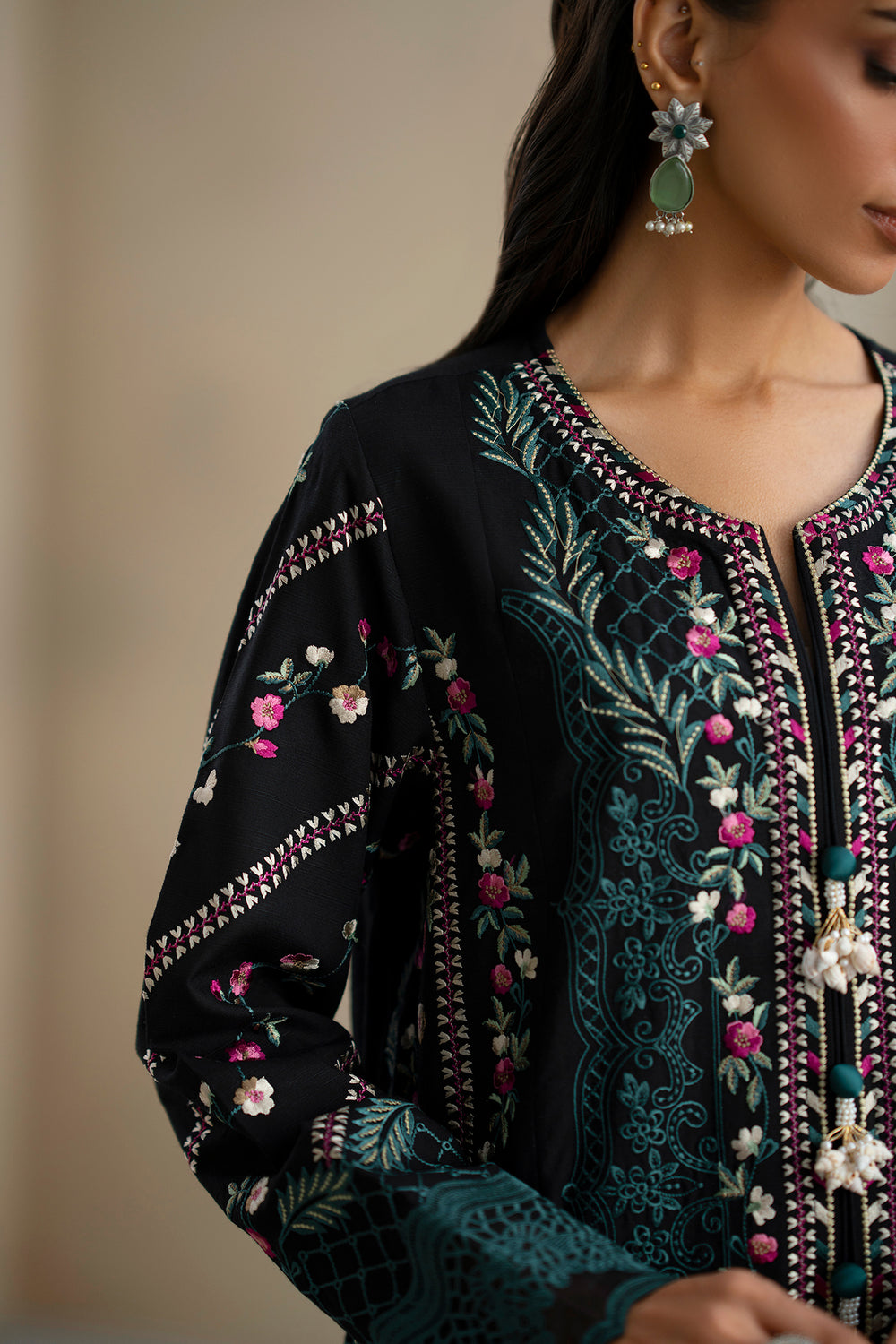 -Embroidered Dyed Khaddar Shirt front Center Panel 1 Pc