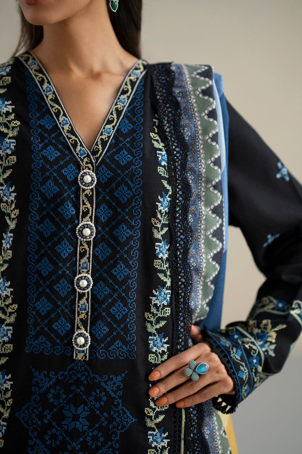 -Embroidered Dyed long slb Karandi Shirt front Center Panel 1 Pc