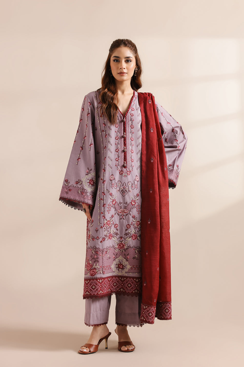 Note: Laces and embellishments are not included with unstitched articles.