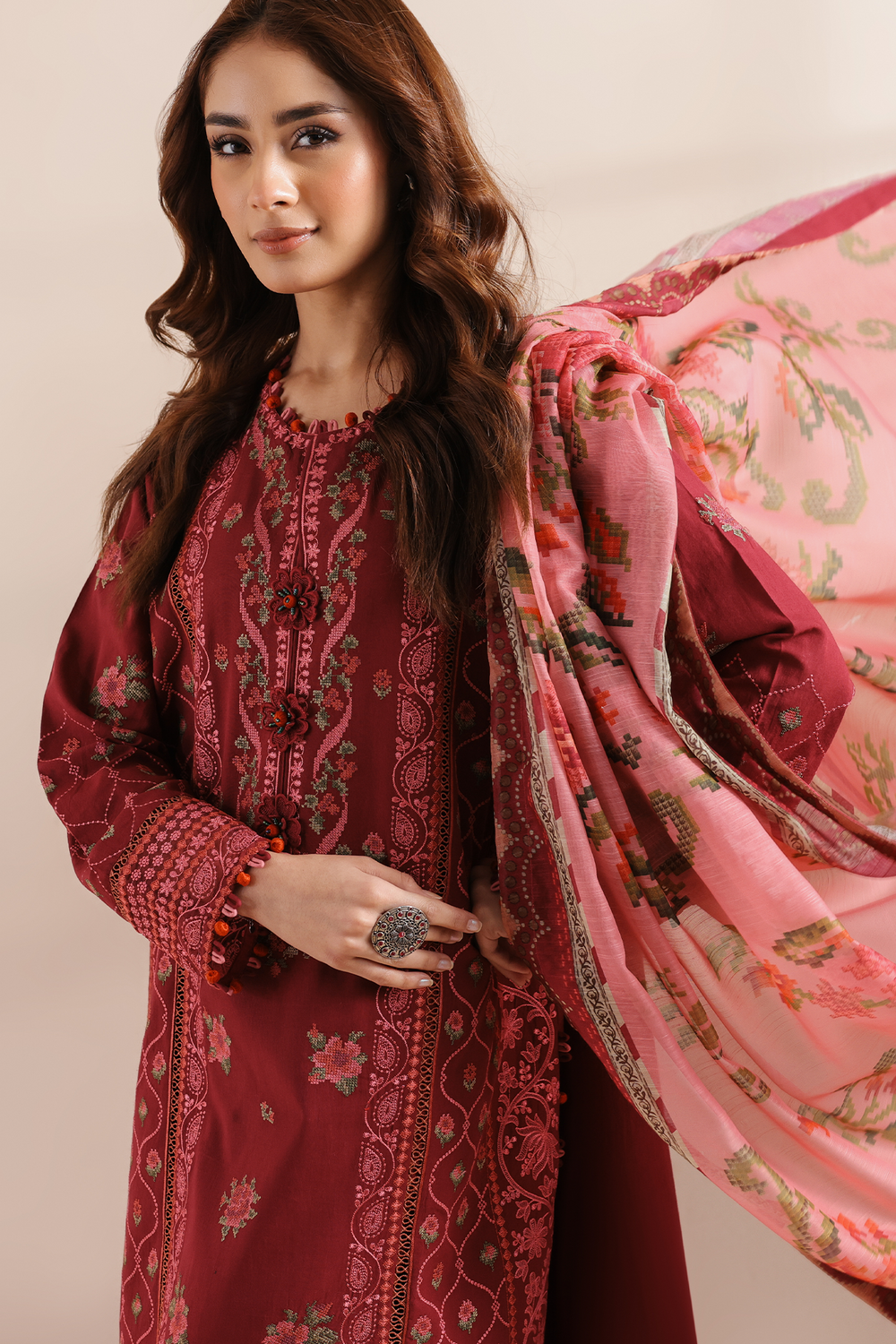 Note: Laces and embellishments are not included with unstitched articles.