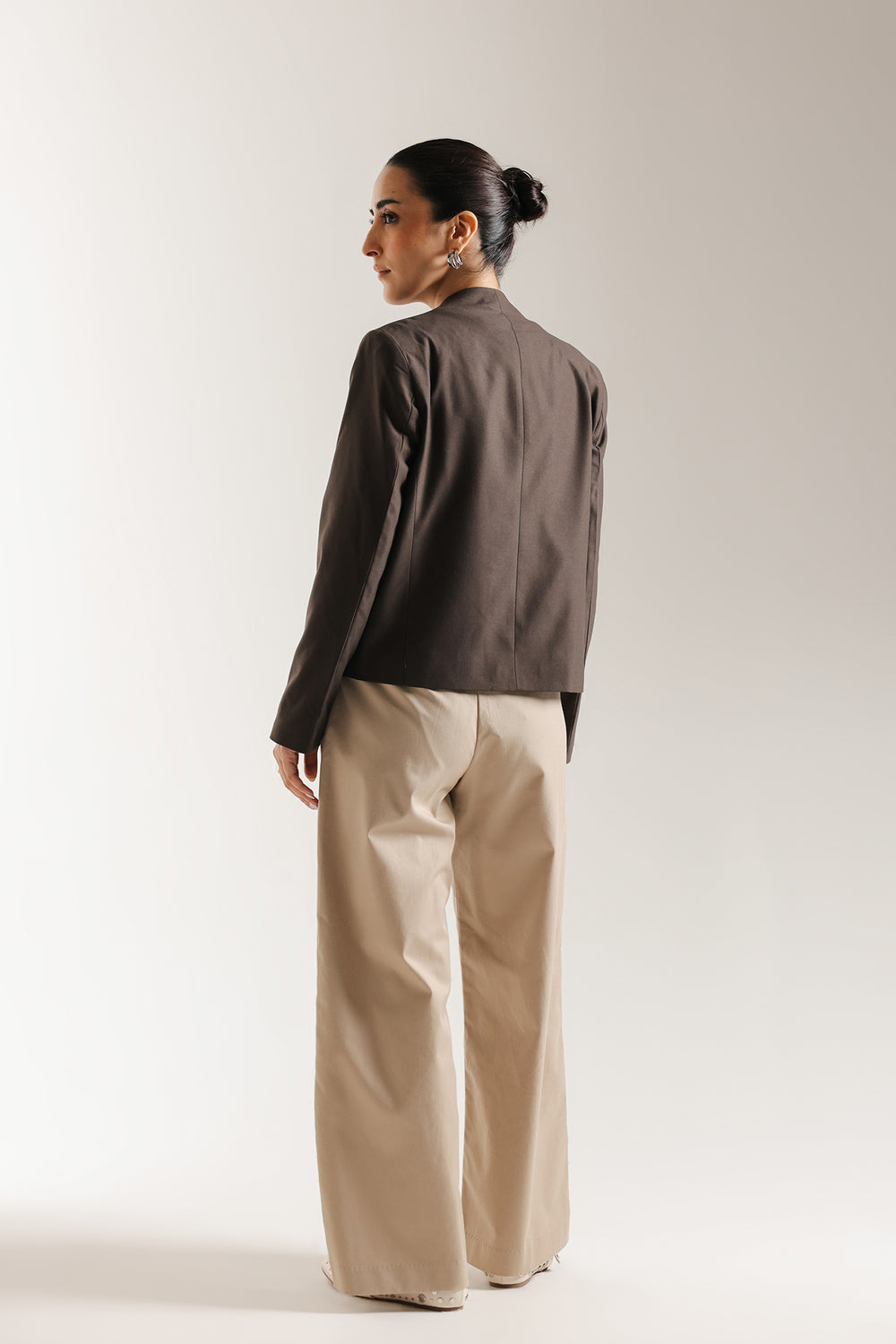 Step into streamlined sophistication with this sharp single-breasted blazer. Crafted in a deep, elegant dark brown hue, this piece offers a refined and modern tailored look. The design features a slightly cropped length and a more fitted, structured silhouette. It is secured with a single button closure for a minimalist finish. This blazer is perfect for creating a polished, professional, and contemporary ensemble.