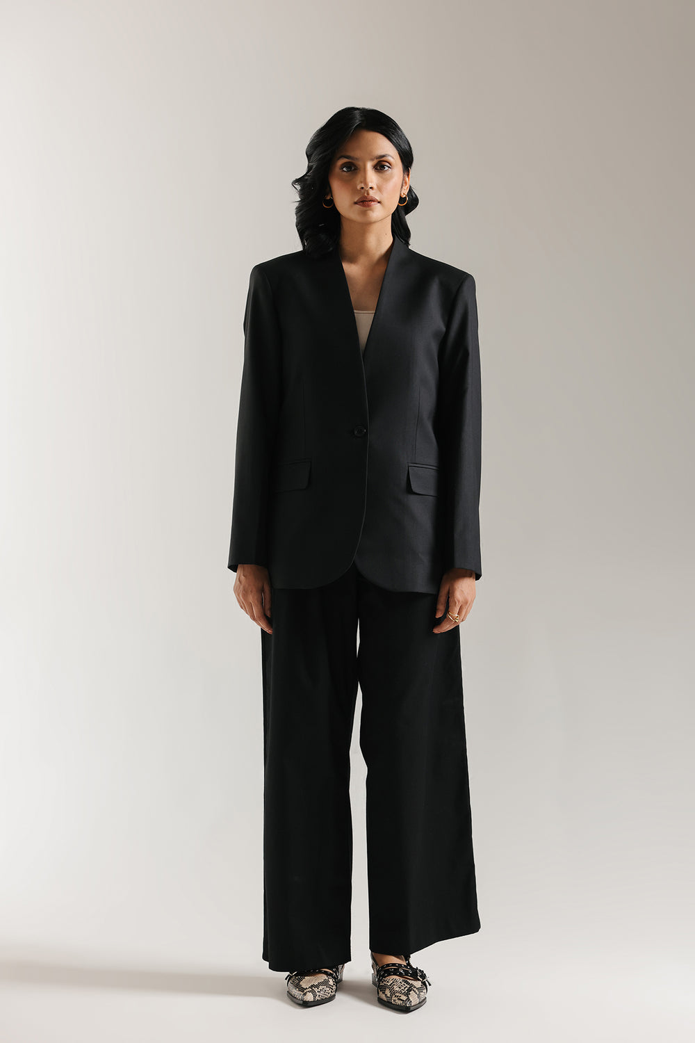 BLAZER - REGULAR FIT - COLLARLESS - FULL SLEEVES - FLAP POCKETS - REGULAR LENGTH