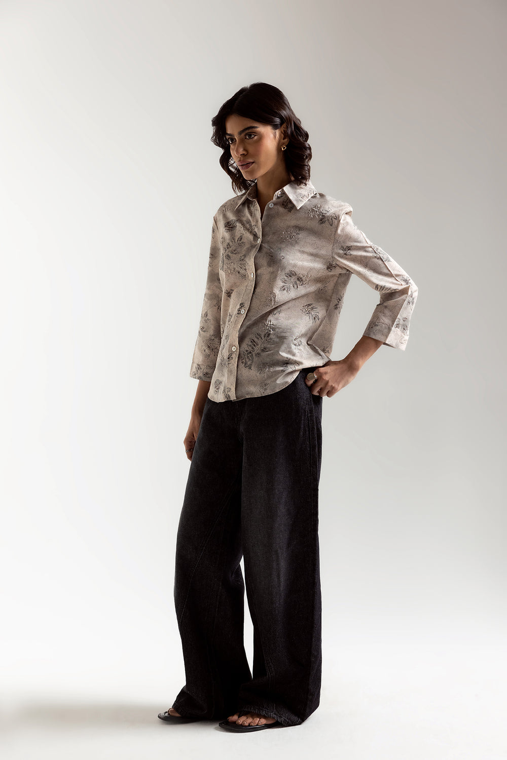 Discover the newest addition to the western collection - the elegant and stylish shirt. This khaki button down shirt is decorated with exquisite embellishments and modern leaf designs, making it the perfect piece to elevate your fashion game. The round hem adds a touch of sophistication to this must-have shirt. Don't miss out on this versatile and chic addition to your wardrobe.
