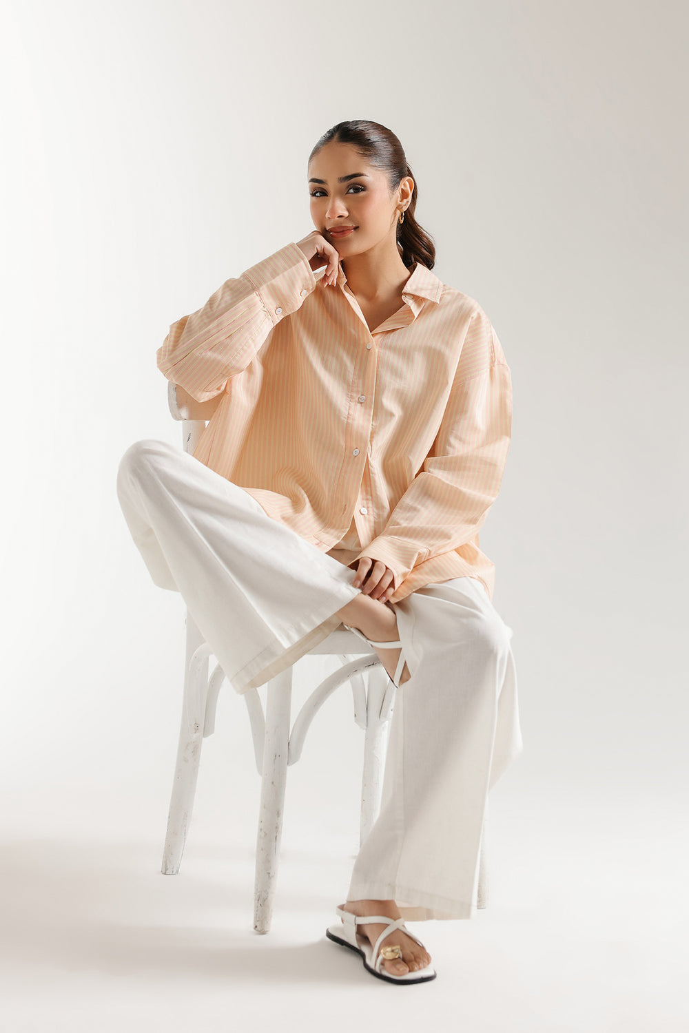 An aesthetically rich composition is portrayed on this trendy shirt rendered in a mesmerizing ice pink color. Crafted in a chic button down silhouette illustrating a classy design adorned with stripes in contrasted white hues. This contemporary shirt is a perfect option to style at fun occasions this season.