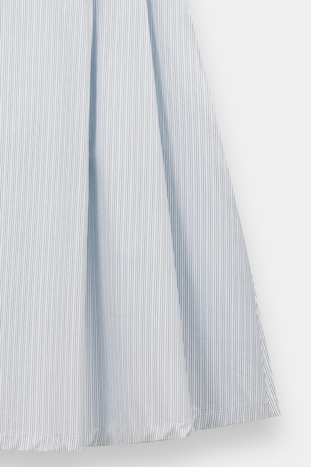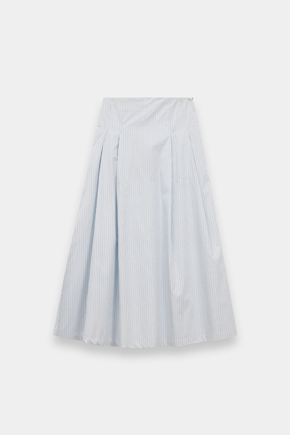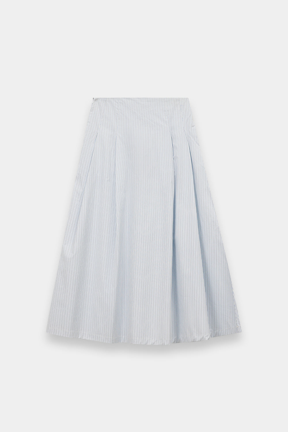 Infuse your seasonal wardrobe with a breath of fresh air in this light blue and white striped skirt. This midi-length piece features a clean, A-line silhouette with classic vertical stripes that create an elongated and polished look. Crafted from a crisp, lightweight fabric, it offers a comfortable fit that transitions effortlessly from a relaxed seaside brunch to a sophisticated afternoon in the city.