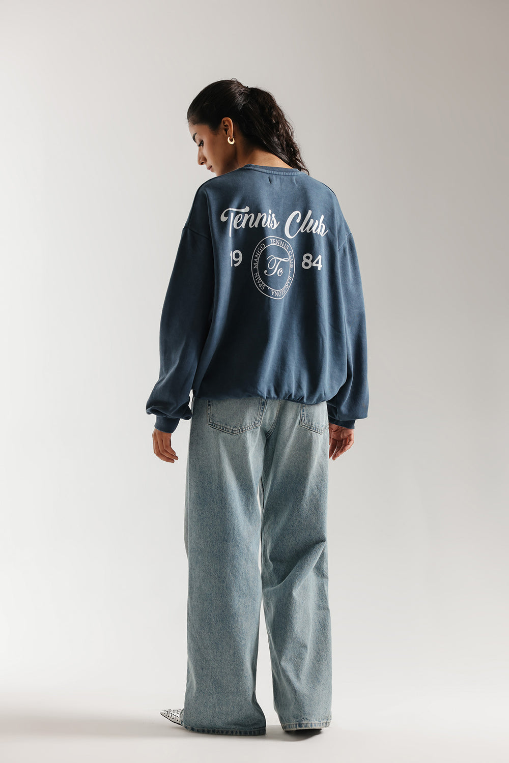 Elevate your casual wardrobe with this refined crewneck sweatshirt in a sophisticated blue-grey tone. The understated white graphic on the chest adds a subtle design element that works seamlessly with various styling options. Crafted for comfort and versatility, this piece transitions effortlessly from everyday wear to relaxed social settings. The muted color palette ensures easy coordination with your existing pieces, making it a practical addition to any collection. Perfect for layering or wearing solo, this sweatshirt delivers both style and wearability.