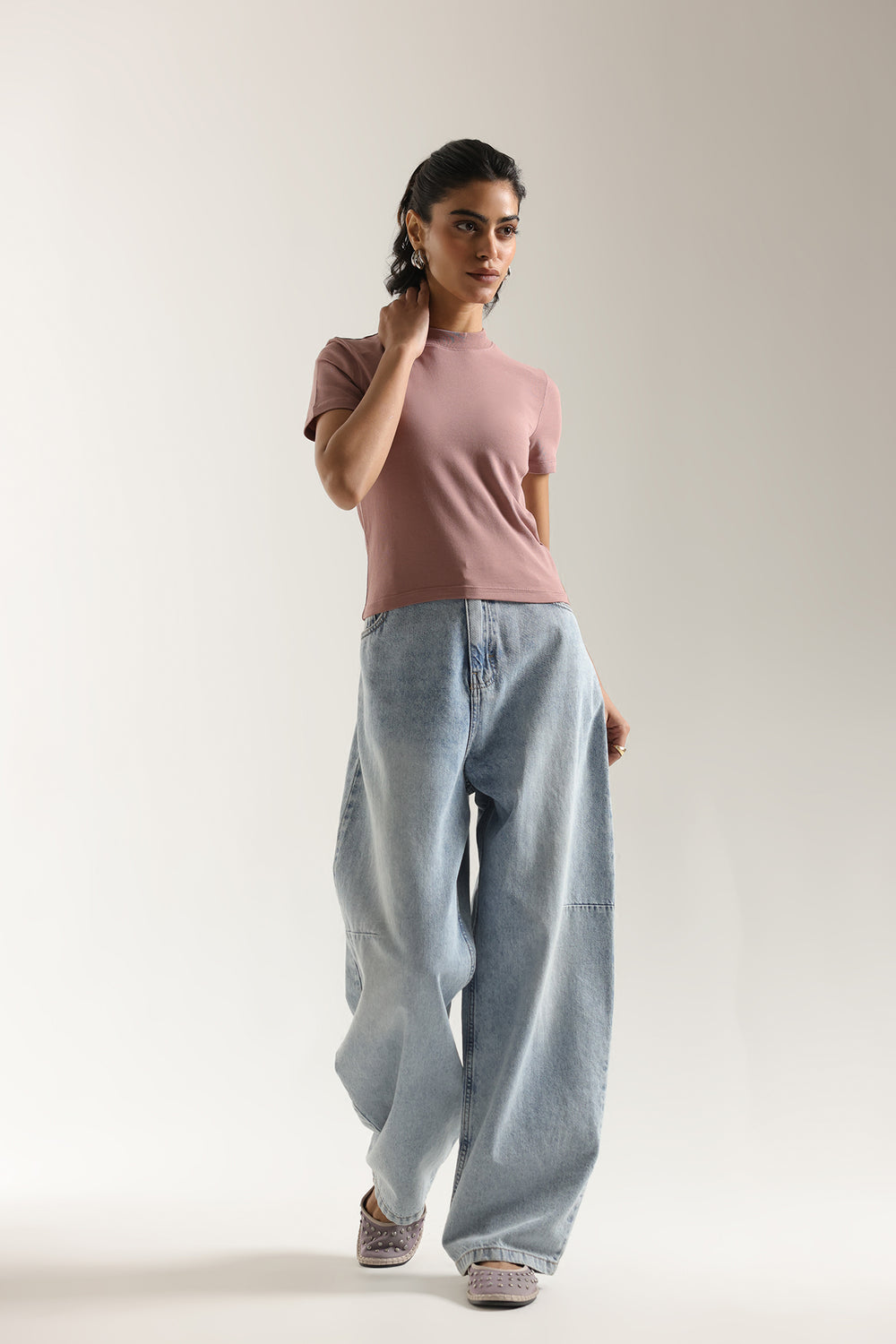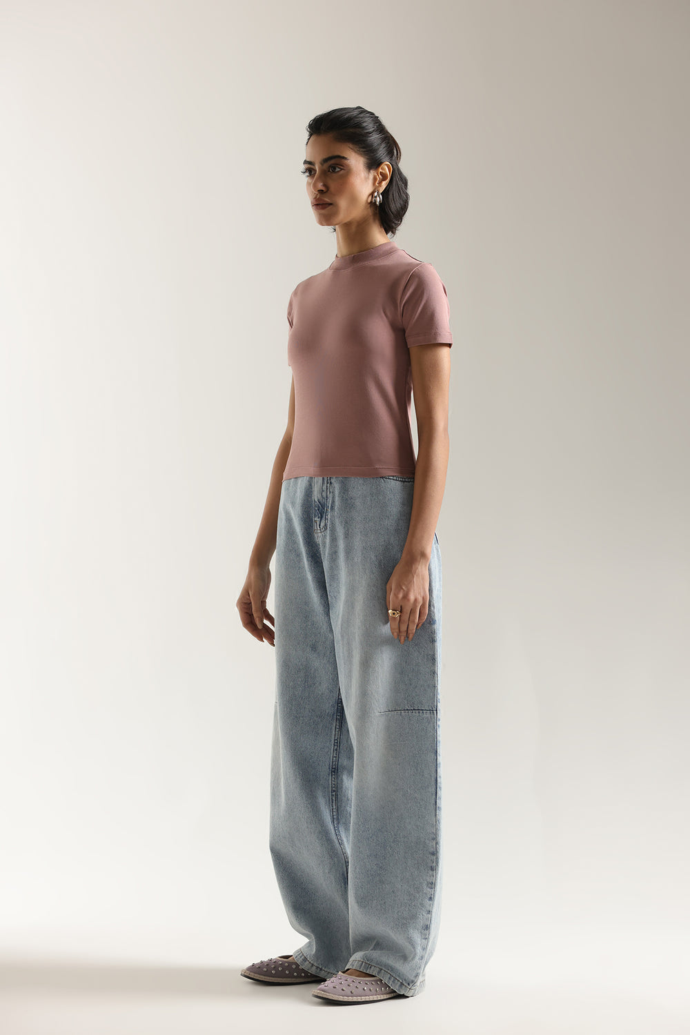Showcase casual chic in this comfortable, classic top. This simple yet versatile T-shirt is crafted in a soft, solid coral pink fabric. It features a traditional crew neck and short sleeves, cut in a flattering, slightly cropped fit. The clean design makes it an effortless foundational piece for any casual outfit.