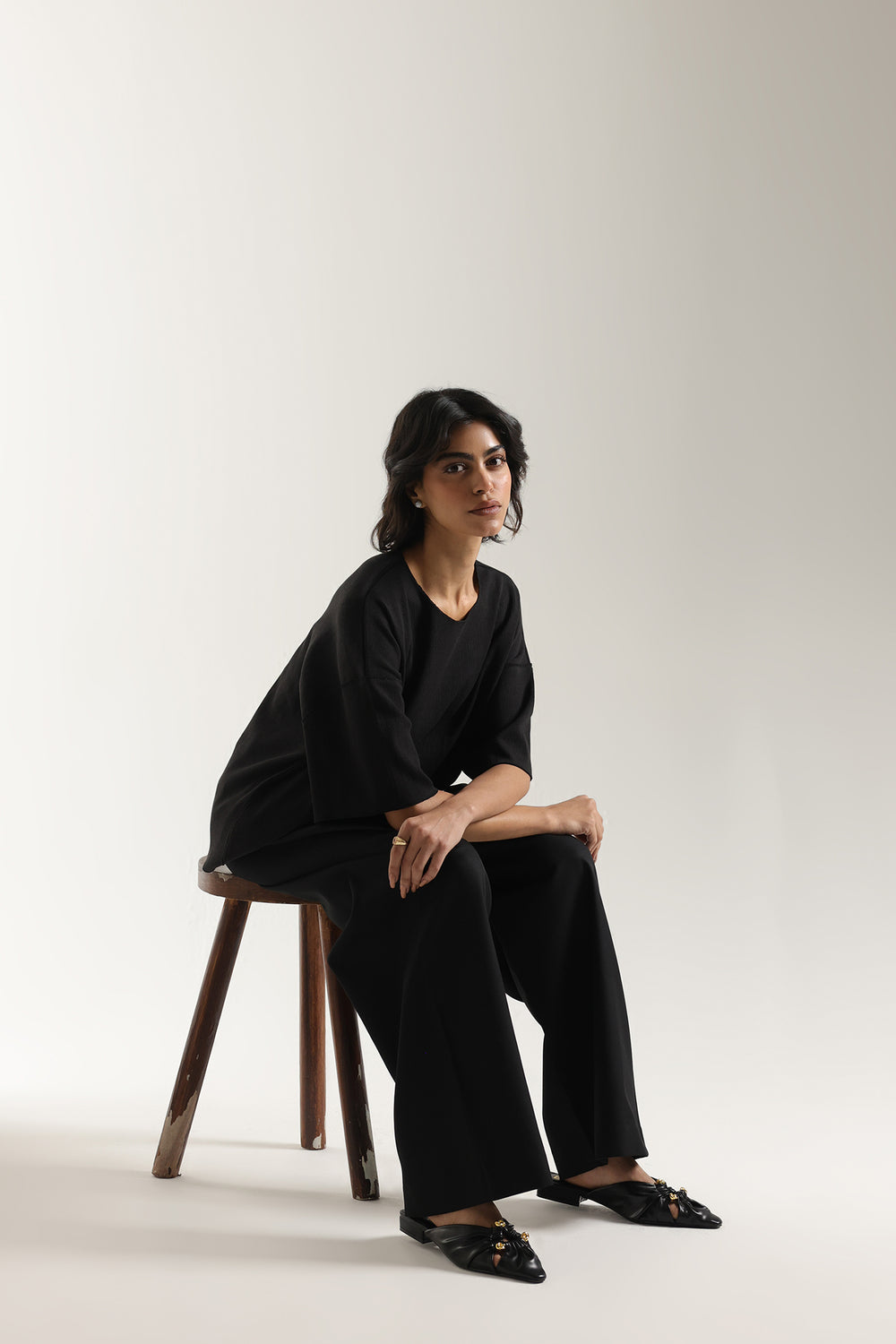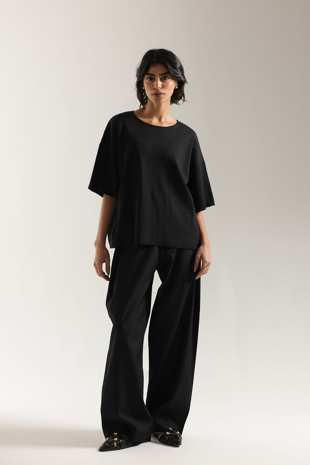 Showcase casual chic in this comfortable, classic top. This simple yet versatile T-shirt is crafted in a soft, solid classic black fabric. It features a traditional round neck and short sleeves, cut in a flattering, relaxed fit. The clean design makes it an effortless foundational piece for any casual outfit.