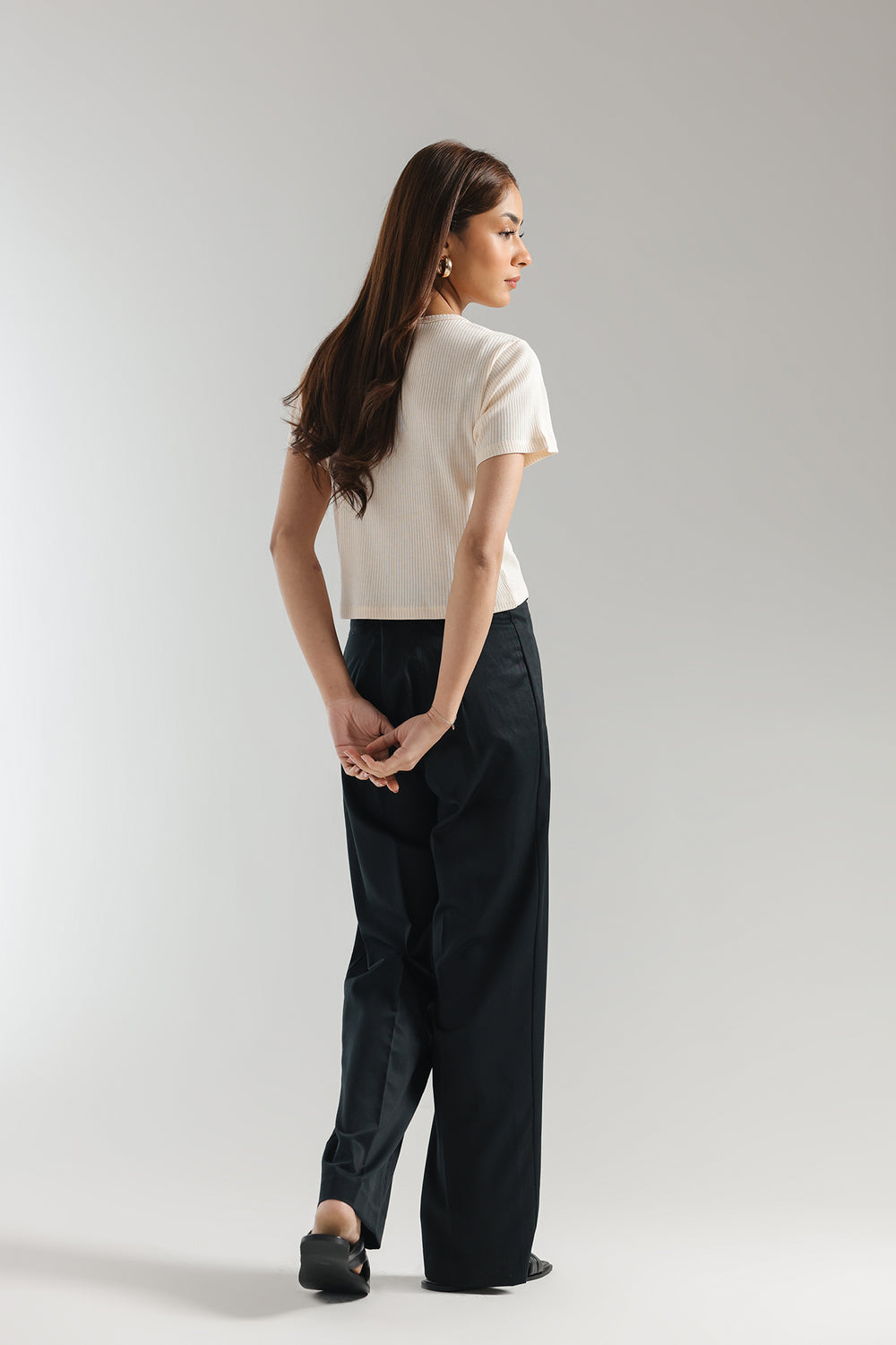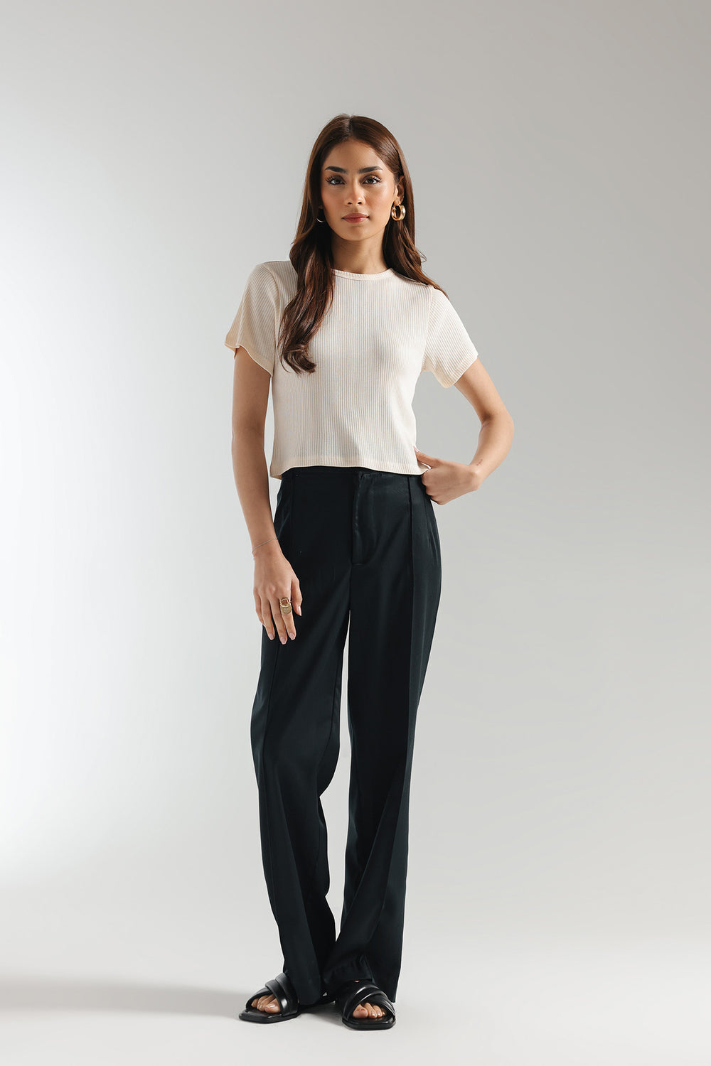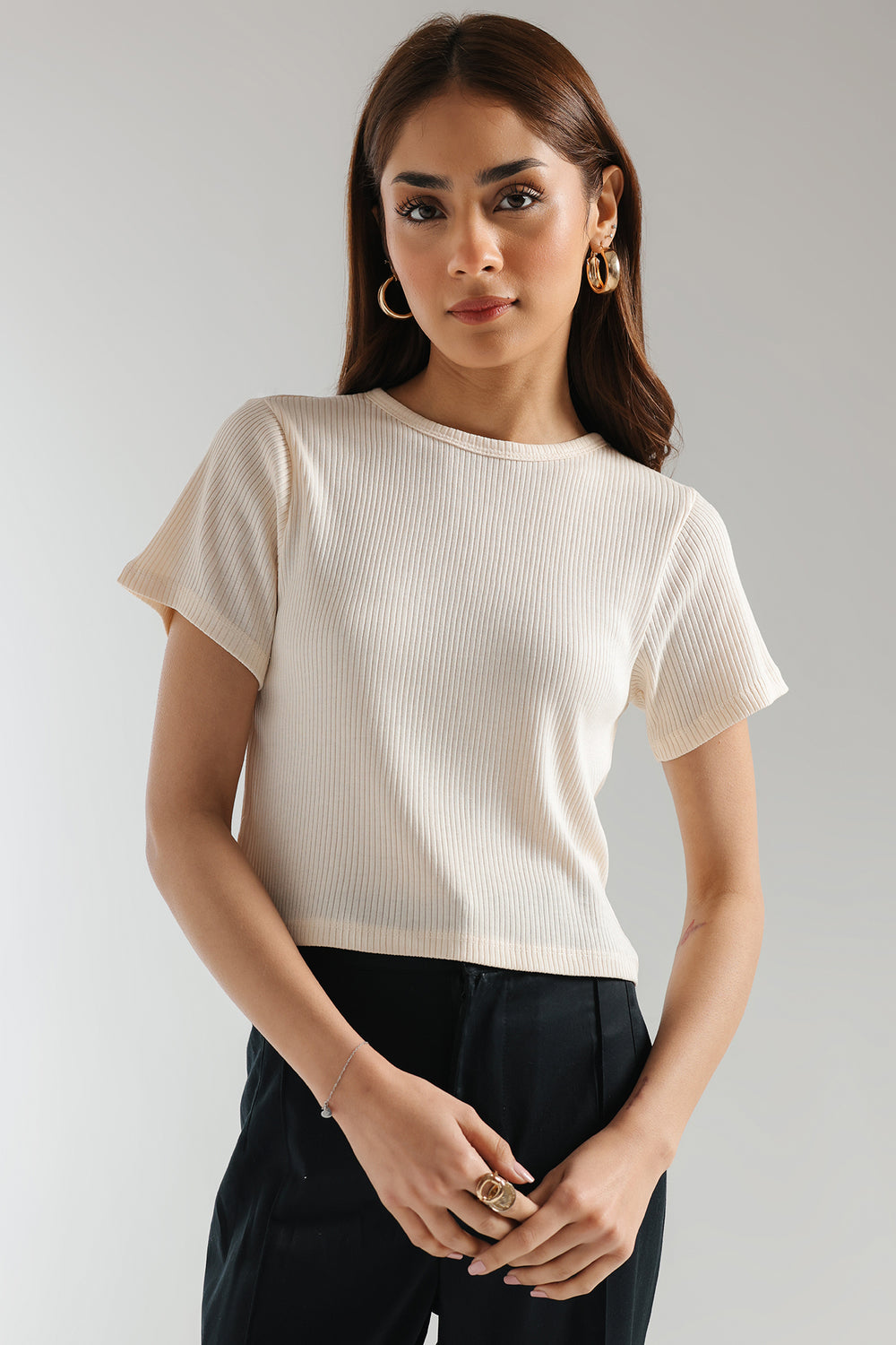 A mesmerizing classy top crafted in a trendy cropped silhouette with round neck is beautifully illustrating a solid composition with ribbed texture. Style this contemporary top at fun events and make a statement this season