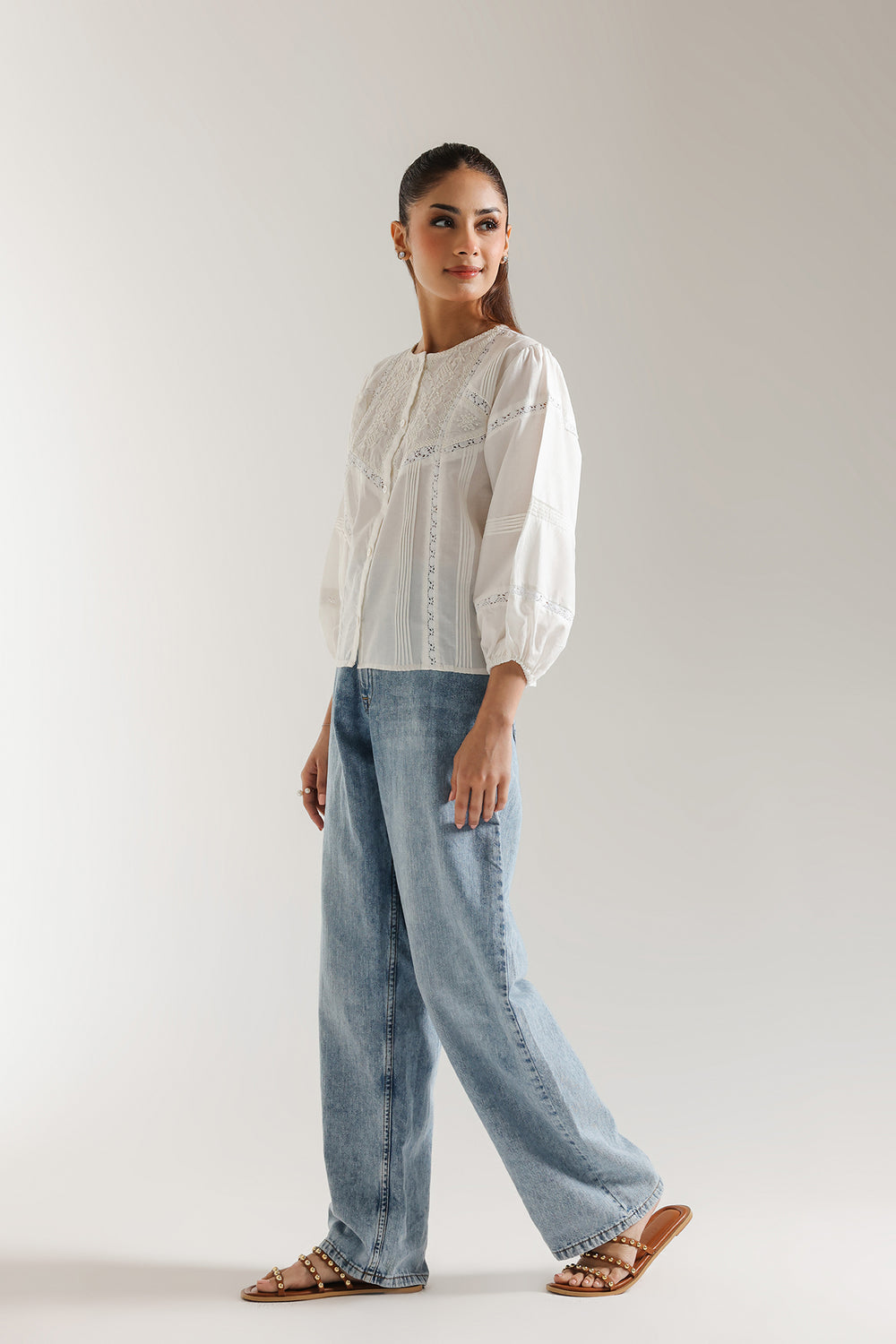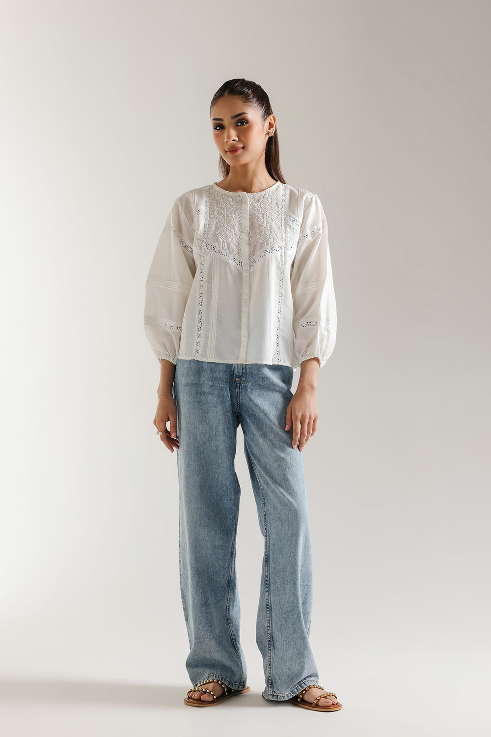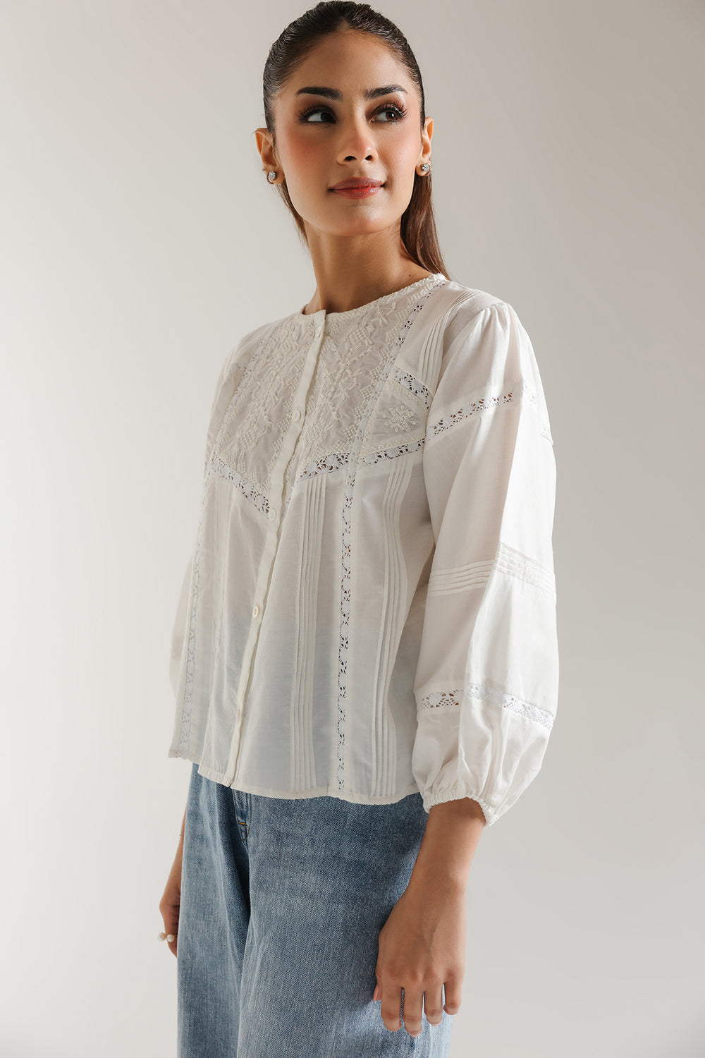 Float through your day in whispers of white with this embroidered top. Delicate embroidery adorns the yoke and sleeves, adding a touch of intricate artistry to the classic silhouette. The soft, breathable fabric and relaxed fit ensure all-day comfort, while the subtle details elevate its style. Pair this versatile piece with your favorite denim for a chic casual look or tuck it into a skirt for a more refined ensemble.