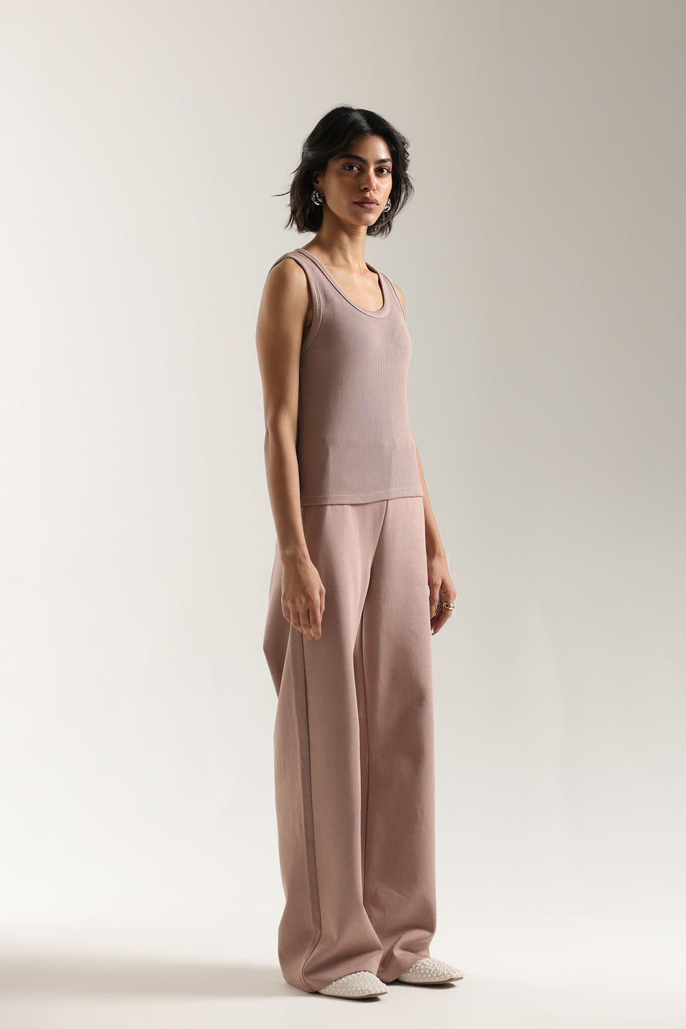 Flaunt a sleek, modern look with this versatile tank top. This fitted, sleeveless top is designed with a classic ribbed texture and a clean, scoop neckline, offering a comfortable and flattering fit. The pale pink color provides a beautiful contrast against any separate. It's the perfect essential layering piece.