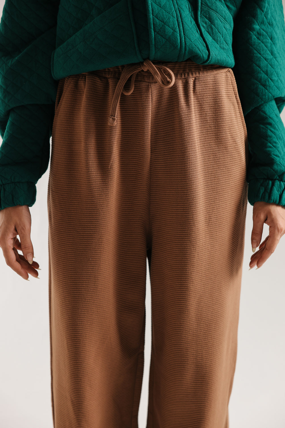 Step out in cozy comfort and effortless style with these versatile mocha brown loose fit trousers. The design boasts a relaxed, generous cut, perfect for combination of loungewear comfort and contemporary high fashion.