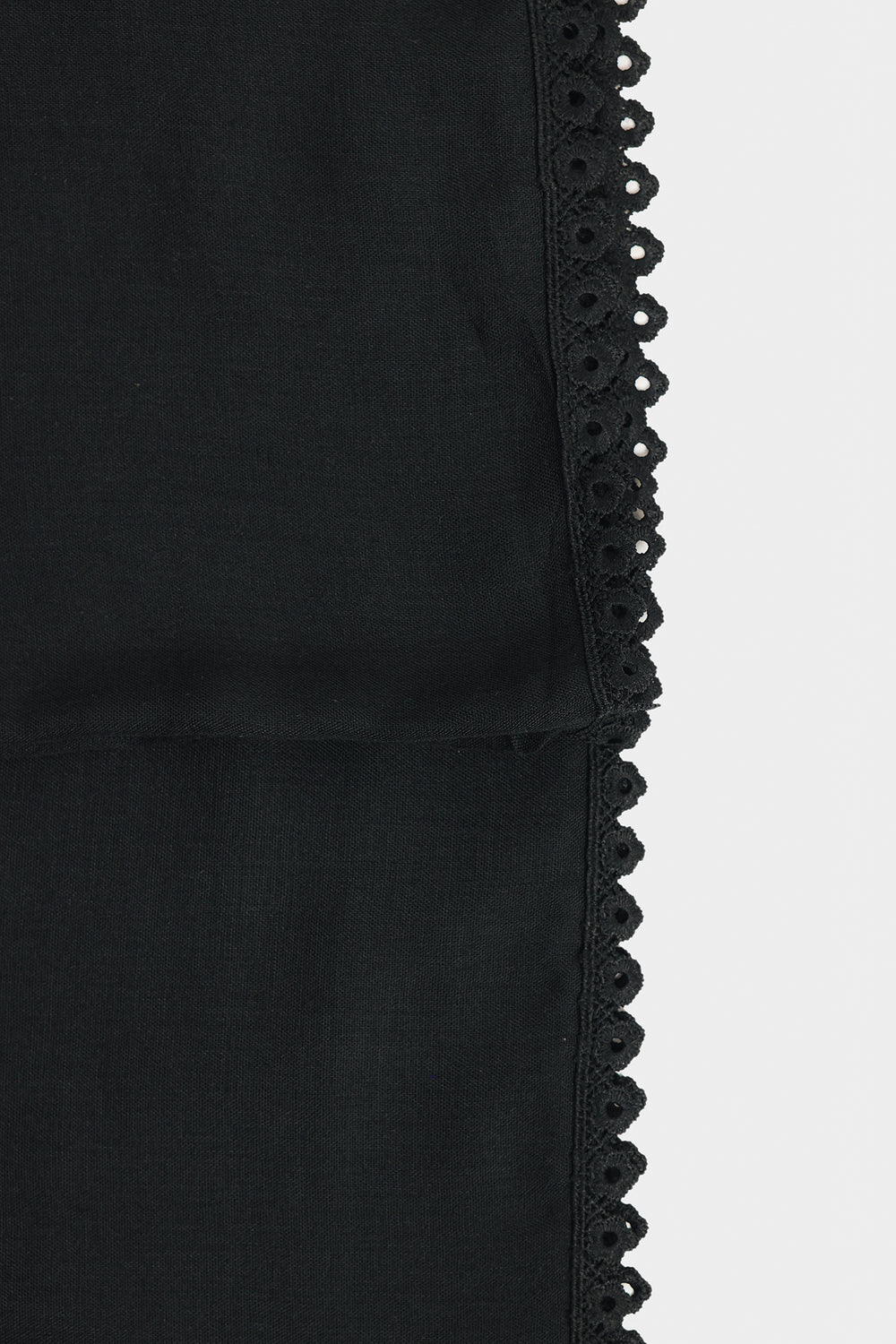 This black dupatta features delicate white lace detail along the edges, adding a touch of elegance to any outfit, it provides a comfortable and stylish accessory for any occasion. Enhance your look with this timeless and versatile dupatta.