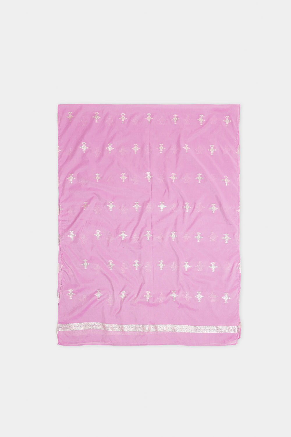 Drape yourself in the vibrant artistry of this white and pink-patterned dupatta, featuring stylized floral motifs, creating a visually eye-catching impact. Drape this dupatta to add a pop of color and a unique pattern to your salwar kameez or other outfits. The lightweight nature of the fabric makes it comfortable for all-day wear.