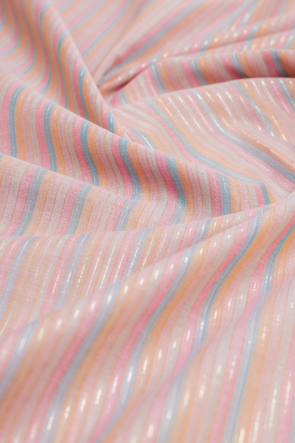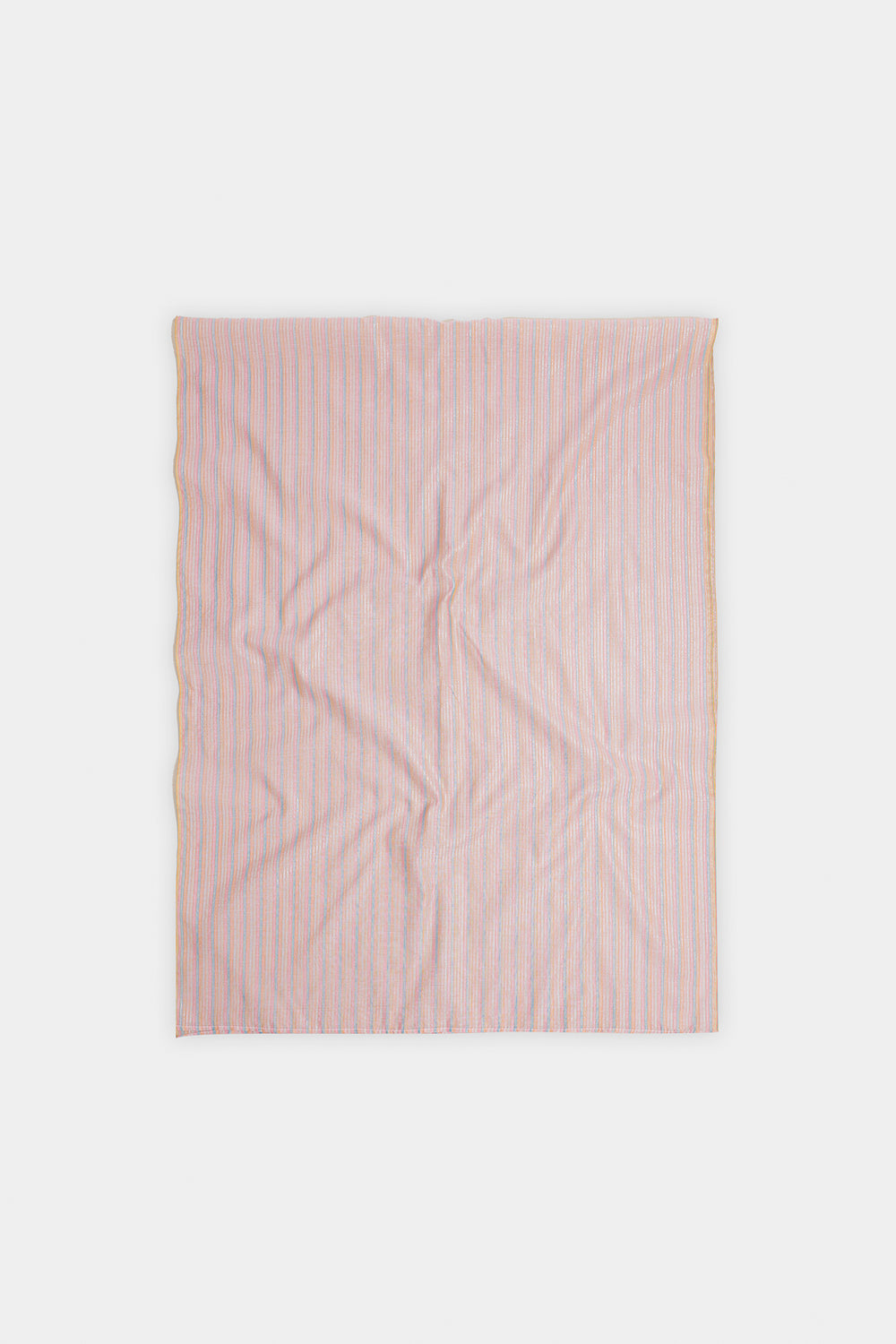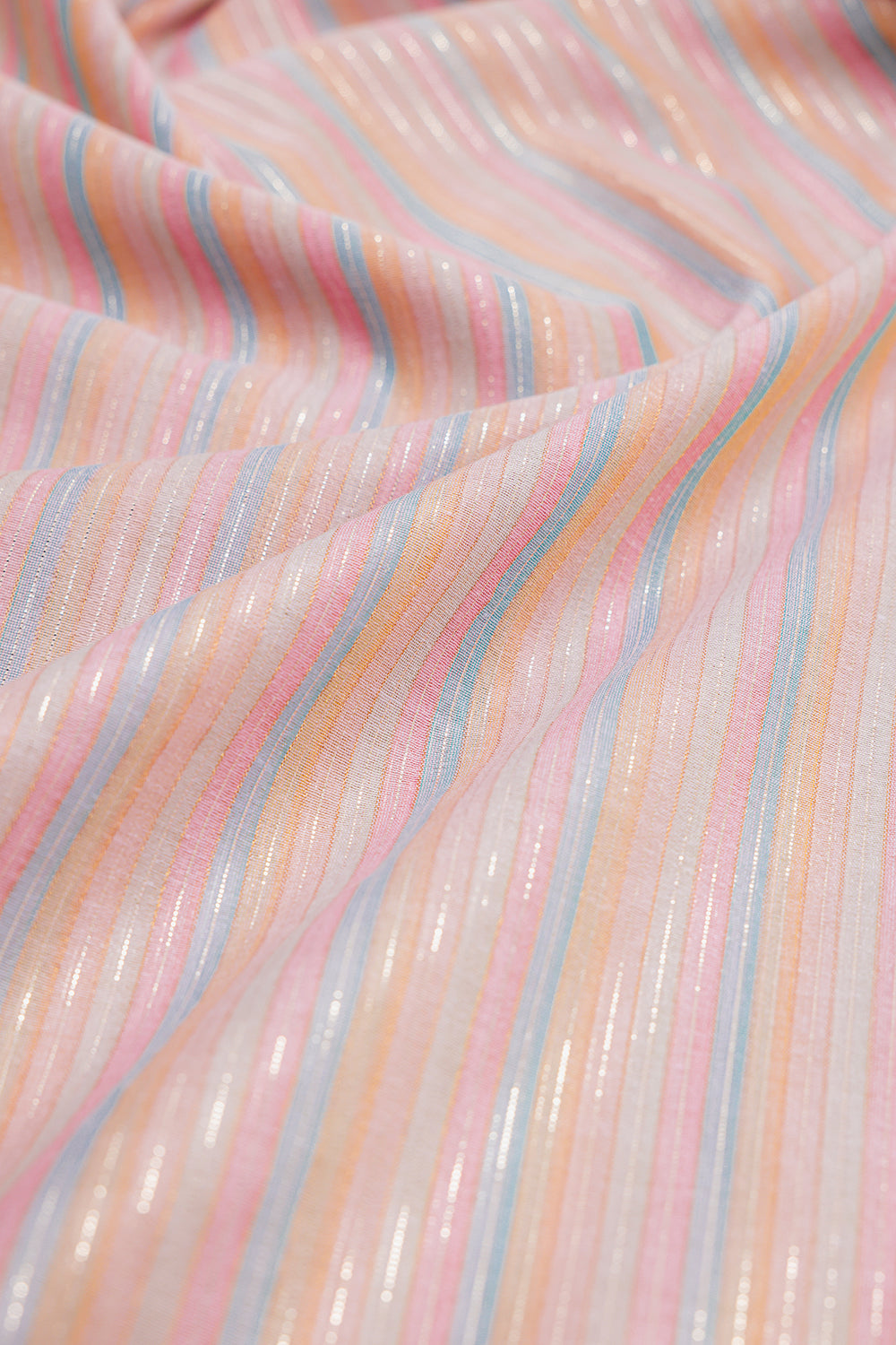 Soft textured dupatta with a pastel color palette has vertical stripes in shades of peach, pink, light blue, and beige, creating a subtle, airy appearance. The weave appears slightly loose, giving it a light and breathable quality — suitable for summer or casual wear.