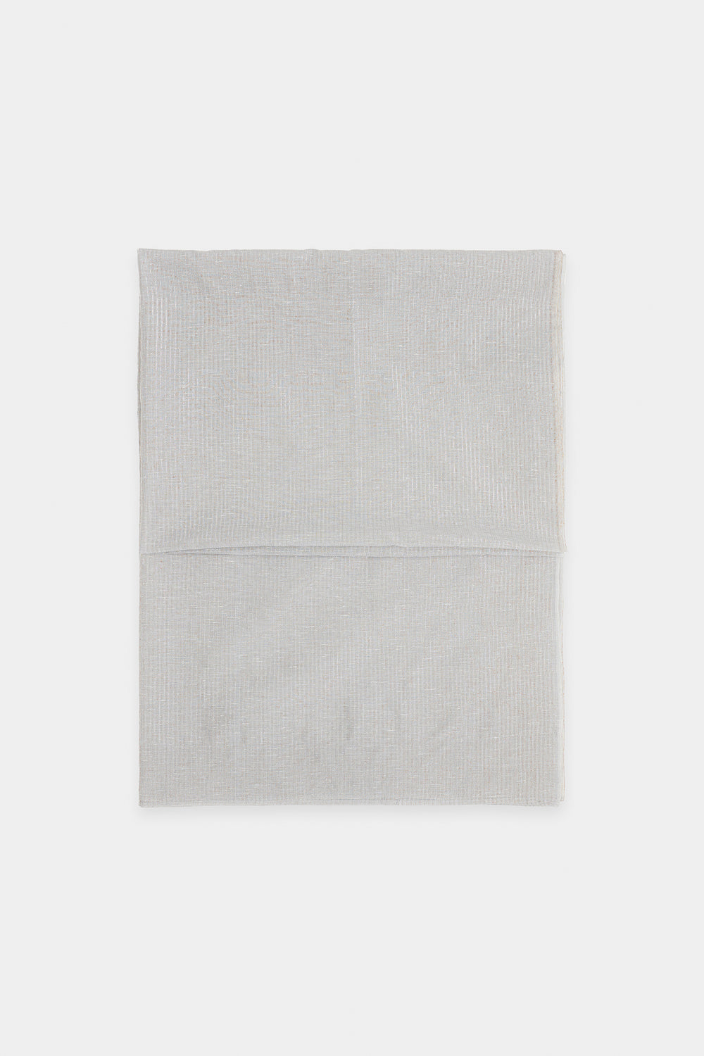 Add a layer of understated warmth and elegance with this timeless shawl. This versatile accessory is crafted from a soft, lightweight fabric in a beautiful, natural grey hue. The textile features a subtle, pinstripe texture, giving it a rich appearance.