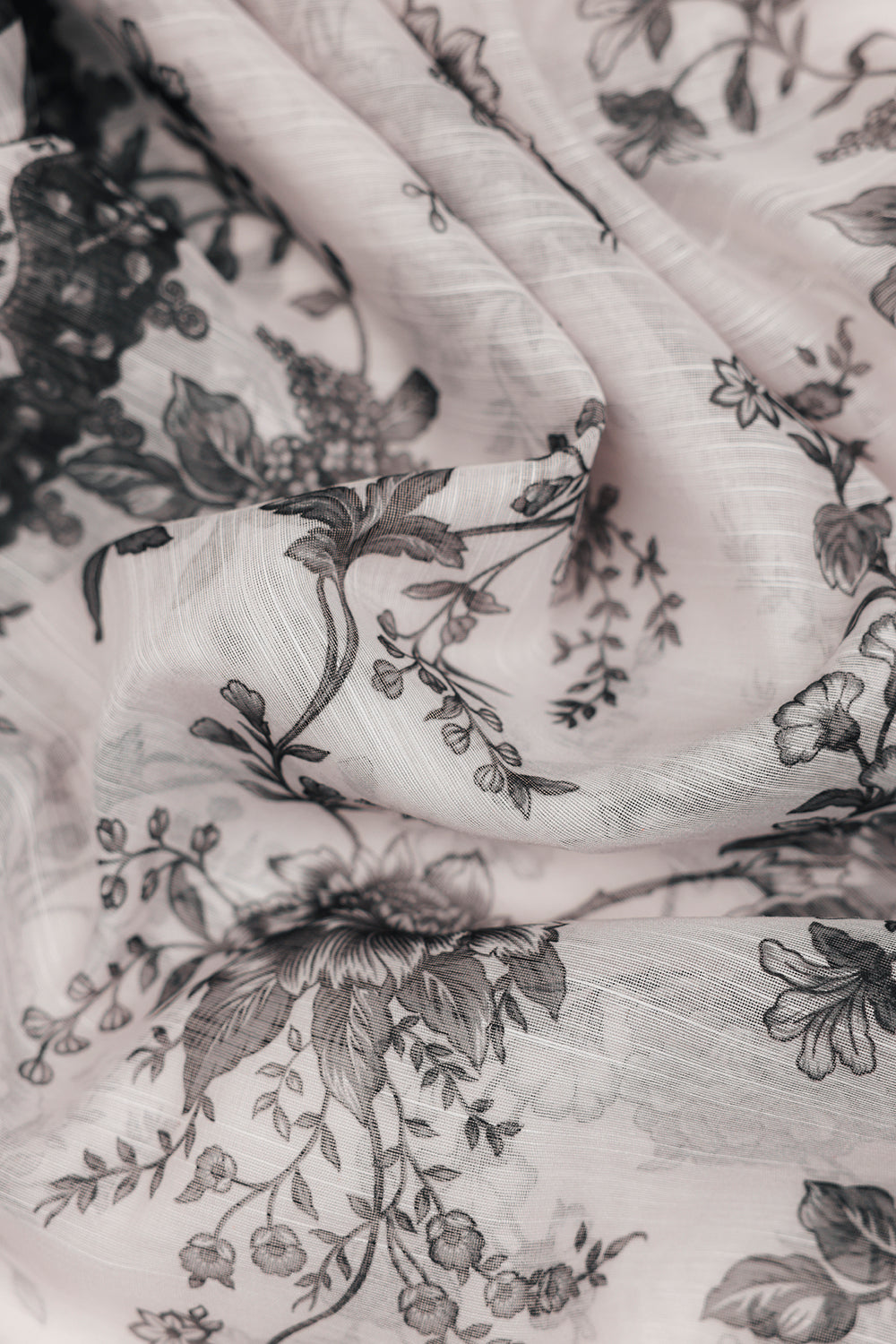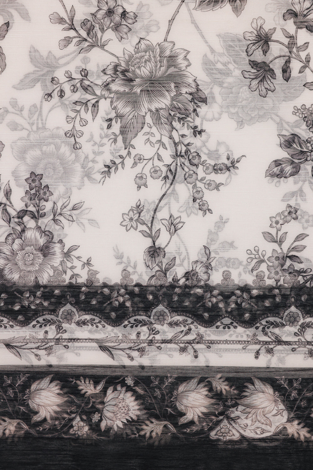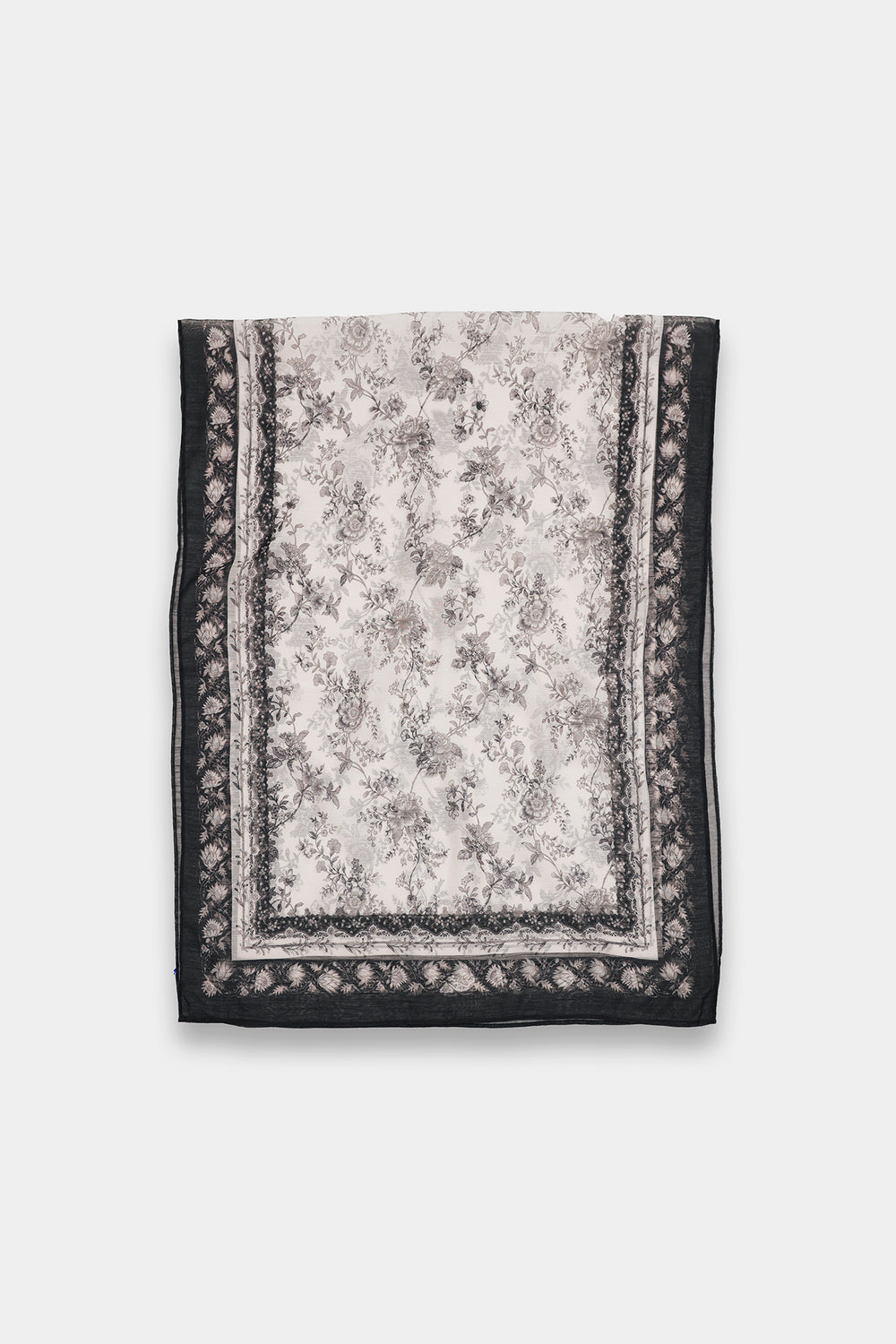 Exude understated luxury with this exquisite dupatta in a pristine off-white shade. The piece is defined by its intricate tonal embroidery, featuring an all-over architectural and floral lattice pattern that adds a rich, three-dimensional texture. The borders are finished with a delicate laser-cut scalloped edge, meticulously detailed with fine floral embroidery for a soft, feminine touch. Crafted from premium, lightweight fabric that offers a graceful and fluid drape, this dupatta is a versatile masterpiece—perfect for elevating a monochromatic formal look or adding a refined artisanal layer to a contemporary ensemble.
