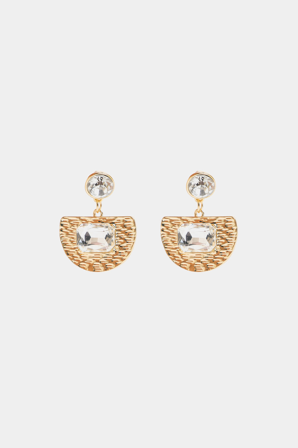 These Semi Circle earrings with an intricate and elegant design highlighted by gold accents with dazzling stones. These graceful earrings exude a luxurious feel. This is perfect for any occasion.