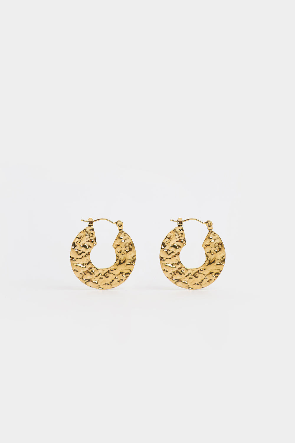 These earrings typically have a sleek and modern aesthetic, often featuring a minimalist design. Crinkle-surface hoop earrings are popular for their versatility. They can be worn casually for everyday looks.