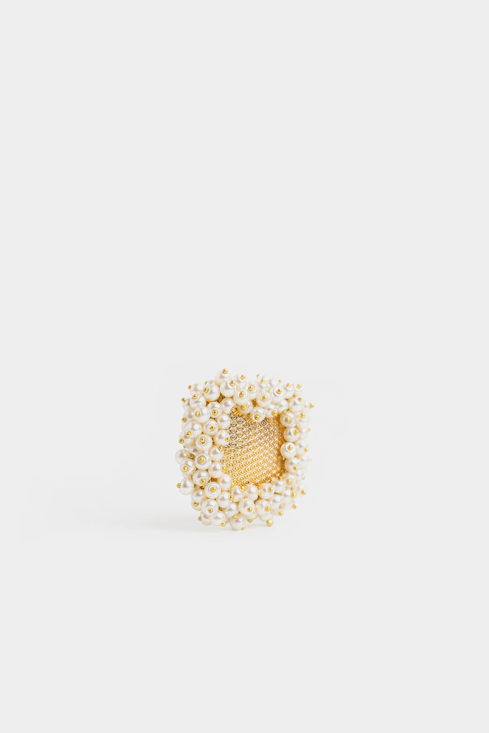 Step into a world of understated luxury with these exquisite gold-toned stud earrings, designed to add a touch of timeless elegance to any ensemble. These stunning pieces feature a unique rectangular silhouette with a rich, textured golden mesh at the center that captures and reflects light with every movement. A lush border of pristine white pearls surrounds the central gold plate, creating a beautiful contrast that balances modern design with traditional grace. Lightweight and effortlessly sophisticated, these earrings are the perfect choice for festive celebrations or as a refined accent to your daily look. Pair them with a silk tunic or a classic embroidered suit to let their radiant charm truly shine.