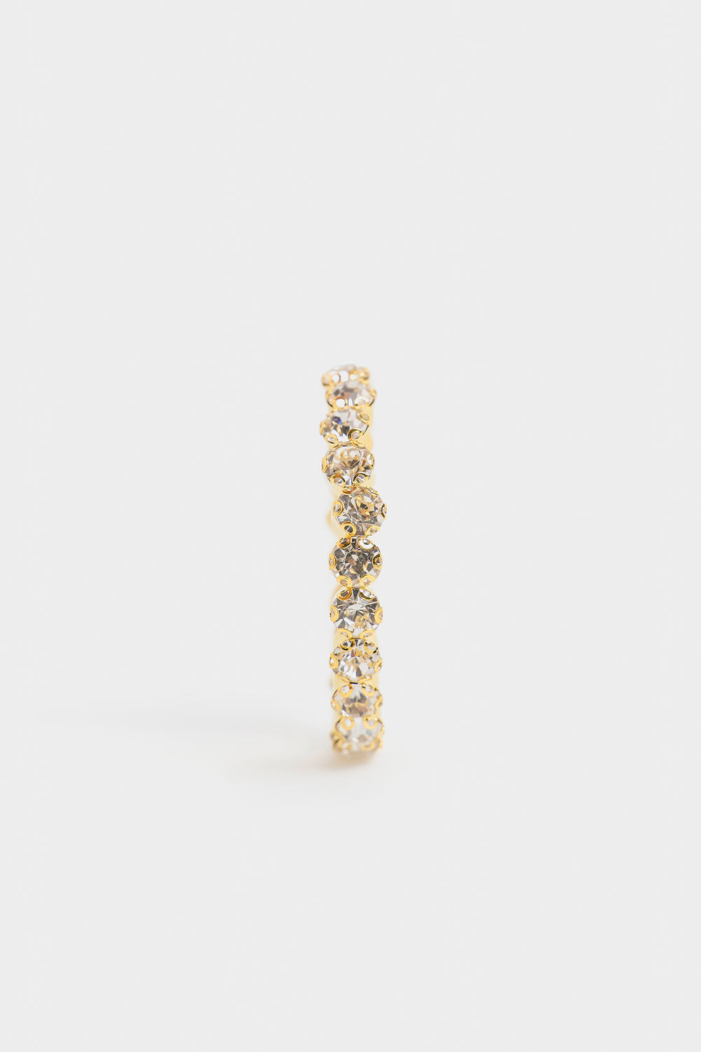 These round hoop earrings are elegantly studded with zirconia stones, combining classic shape with sparkling detail for a refined and versatile accessory. Their expertly crafted design adds a touch of sophistication to any look.