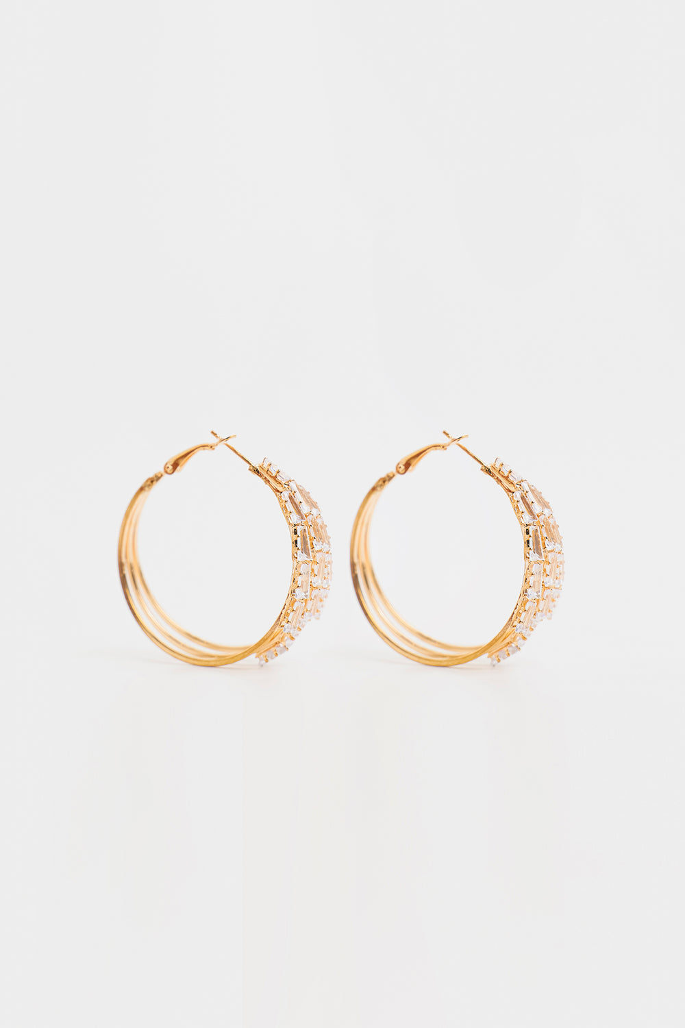 Make a striking statement with these captivating gold-toned hoop earrings. Featuring a unique zircon studded, that catches the light, they offer a bold yet sophisticated addition to any ensemble.