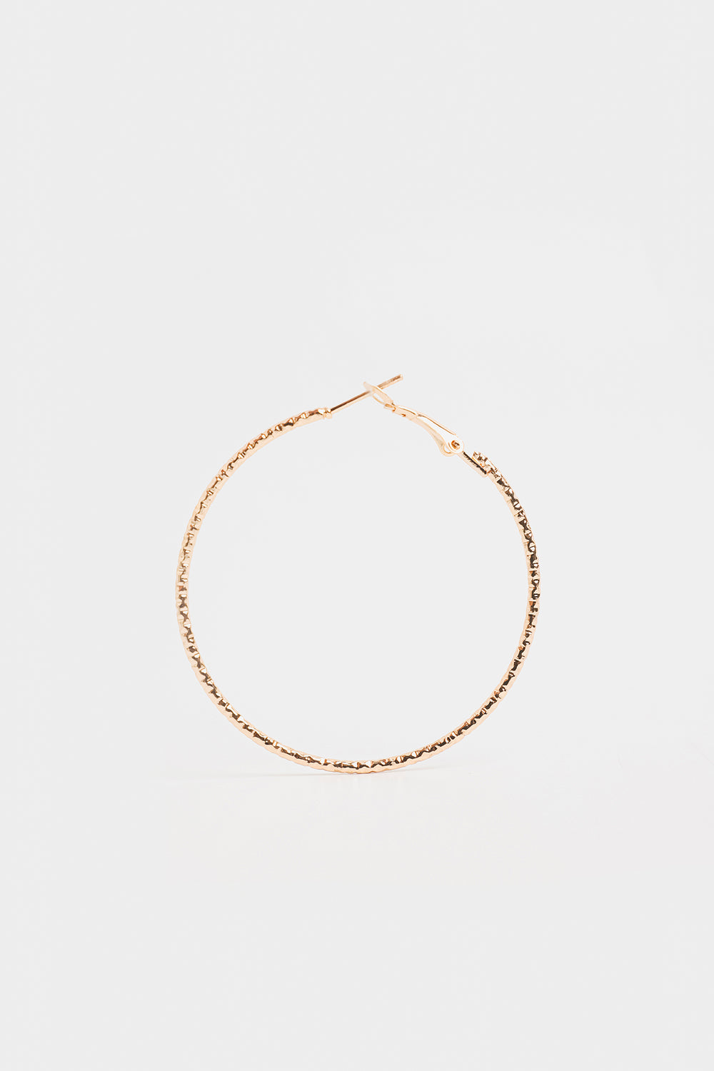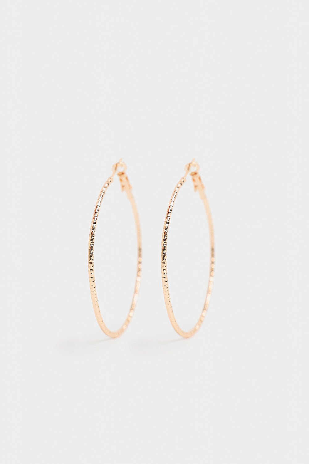 Bring understated glamour to your look with these elegant gold-toned hoop earrings. These large, timeless hoops feature a beautifully textured surface with a subtle diamond-cut pattern that brilliantly catches and reflects the light. The classic, lightweight design makes them comfortable for all-day wear while the refined texture ensures they offer more visual interest than a plain hoop, making them the perfect effortless accessory.