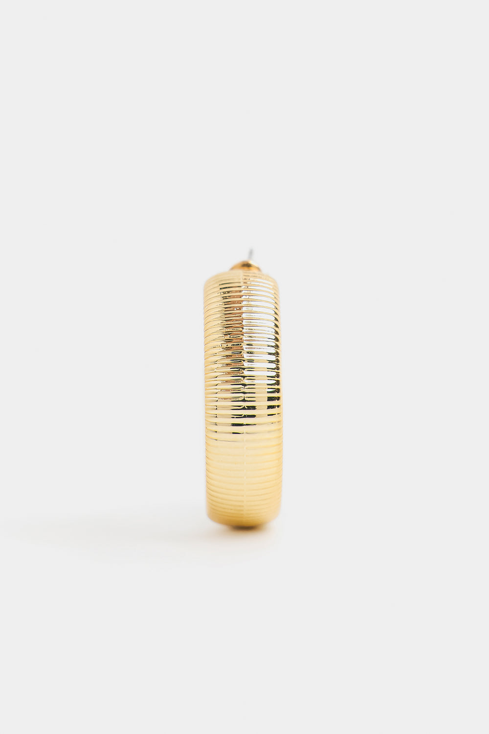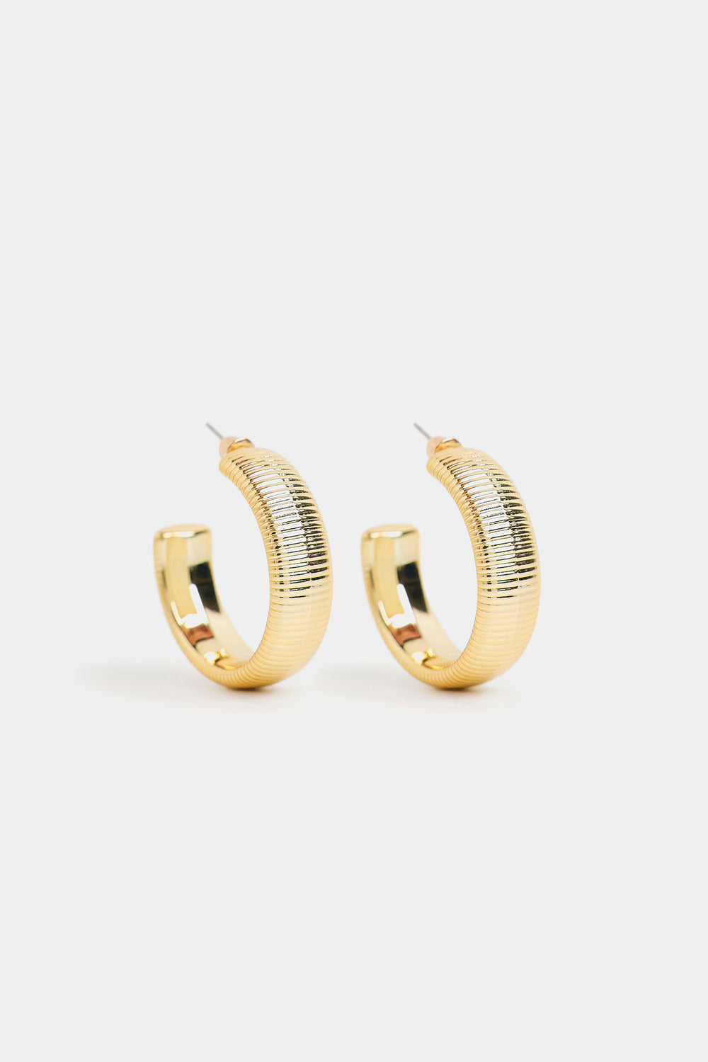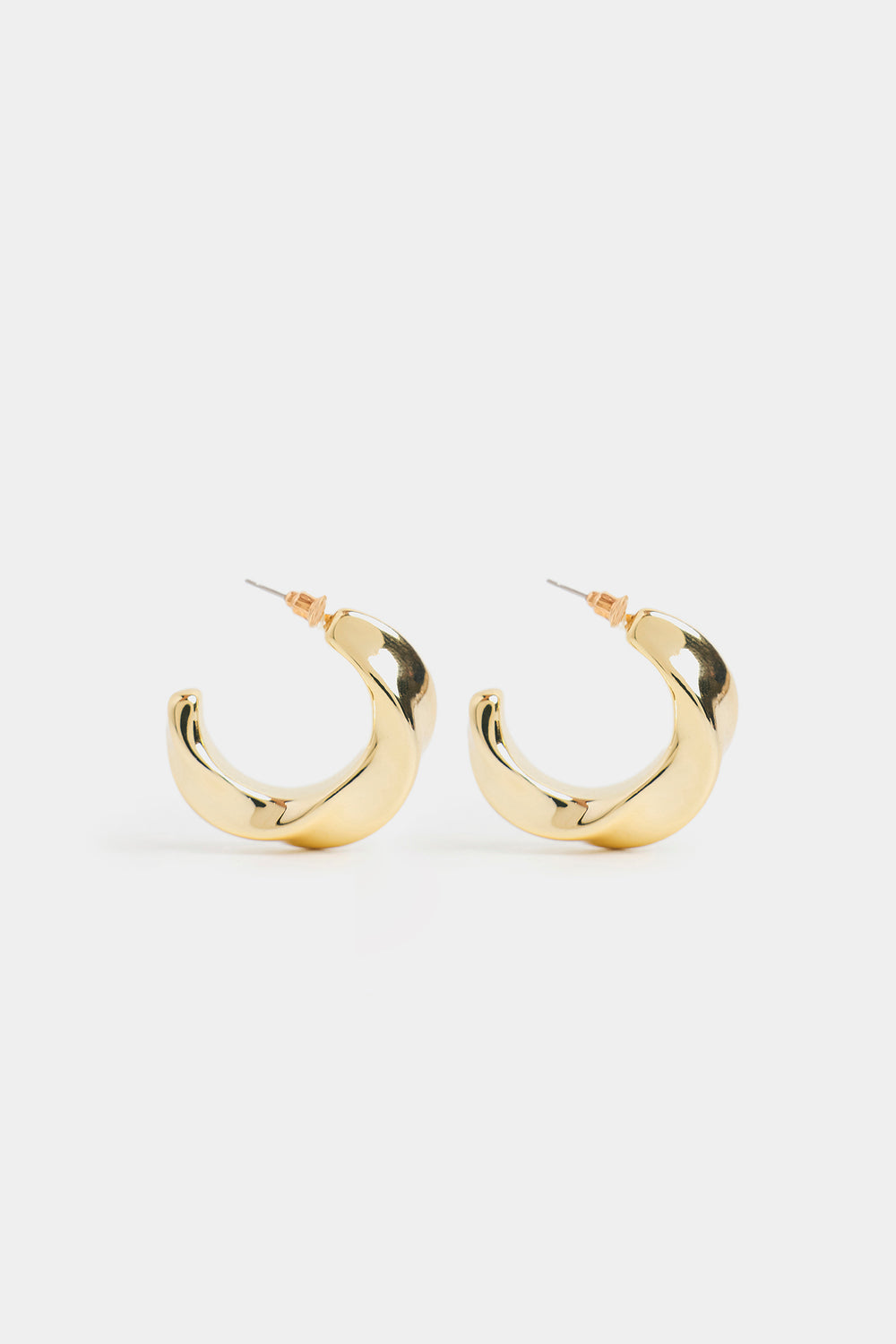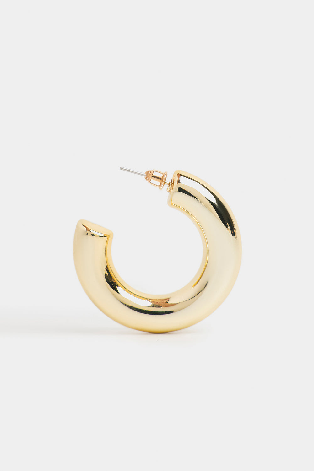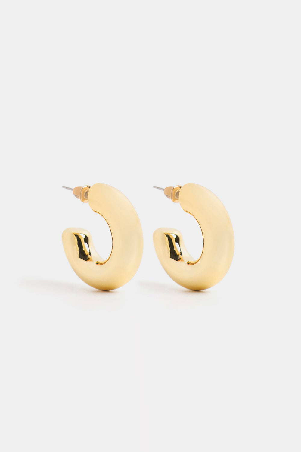 Embrace minimalist chic with this sleek, chunky gold-toned half-hoop earrings offering a contemporary edge and effortless sophistication for everyday wear or special occasions.