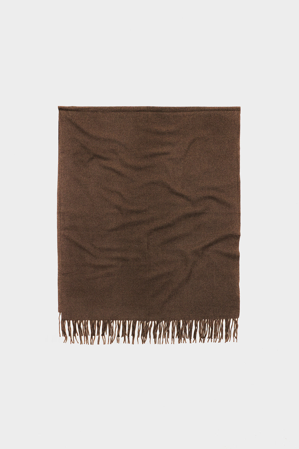 Envelop yourself in soft, understated elegance with this brown scarf. This beautiful shawl is rendered in a solid fabric with a slight texture. The luxurious fabric offers a cozy feel and a comfortable drape. The edges are finished with a classic, matching fringe. Its neutral tone makes it an incredibly versatile accessory, perfect for layering over both solid and printed outfits.