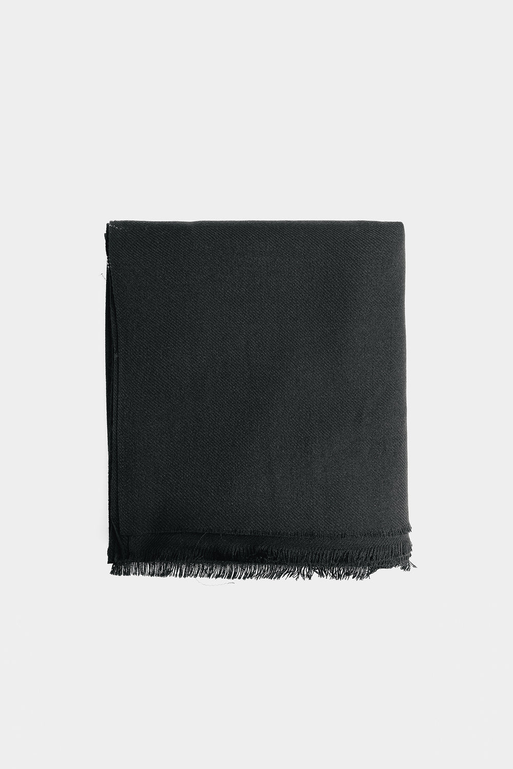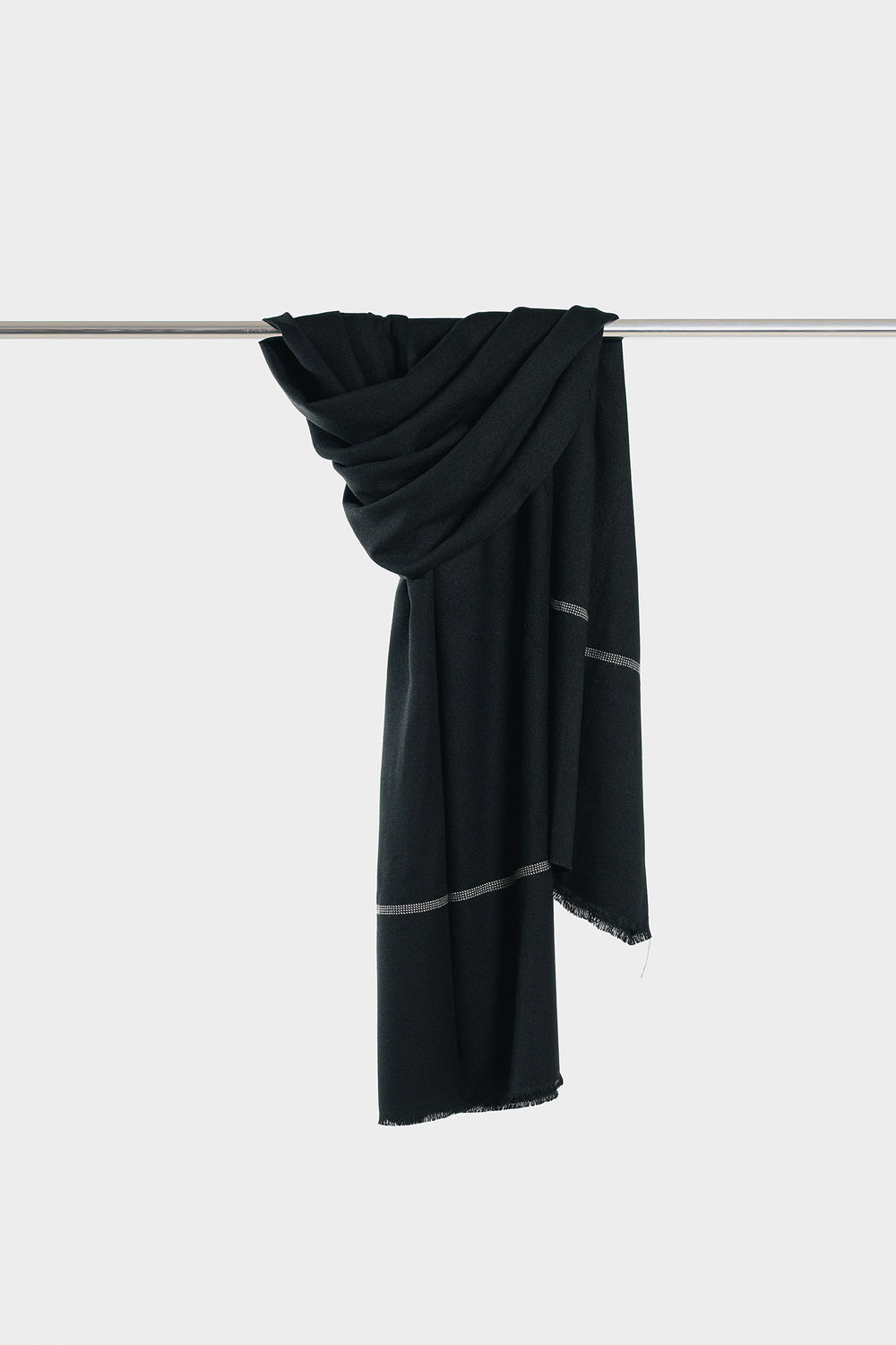 A gracefully draped knitted shawl rendered in black shade, exemplifies pure elegance. Pair this exquisite shawl with stunning outfits to enhance your sophisticated look this season. season.