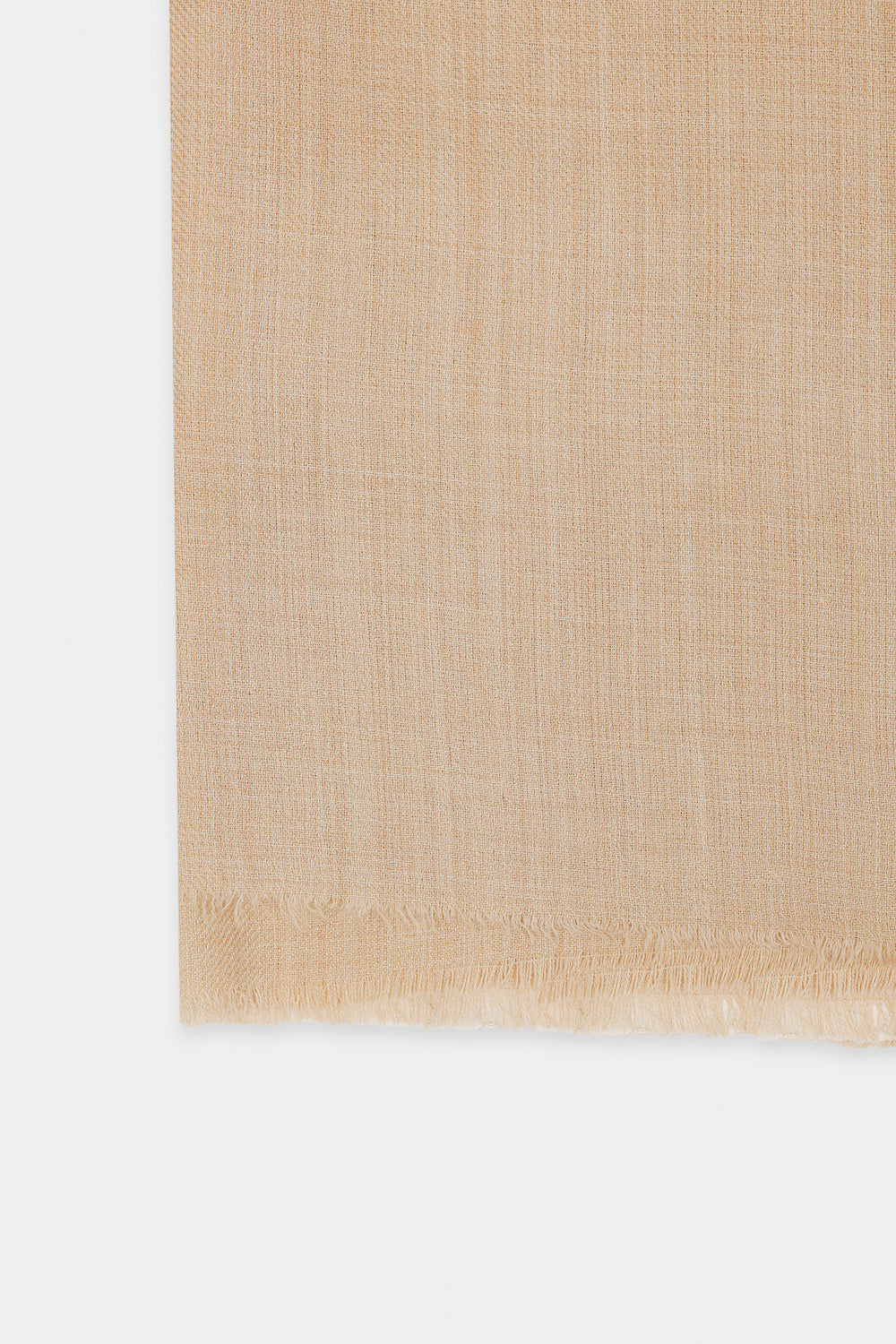 Add a layer of understated warmth and elegance with this timeless shawl. This versatile accessory is crafted from a soft, lightweight fabric in a beautiful, natural ivory hue. The textile features a subtle, fine slub or woven texture, giving it a rich appearance. Its edges are finished with a delicate, natural fringe. This shawl is the perfect neutral piece to effortlessly complement any outfit, providing both style and comfort.