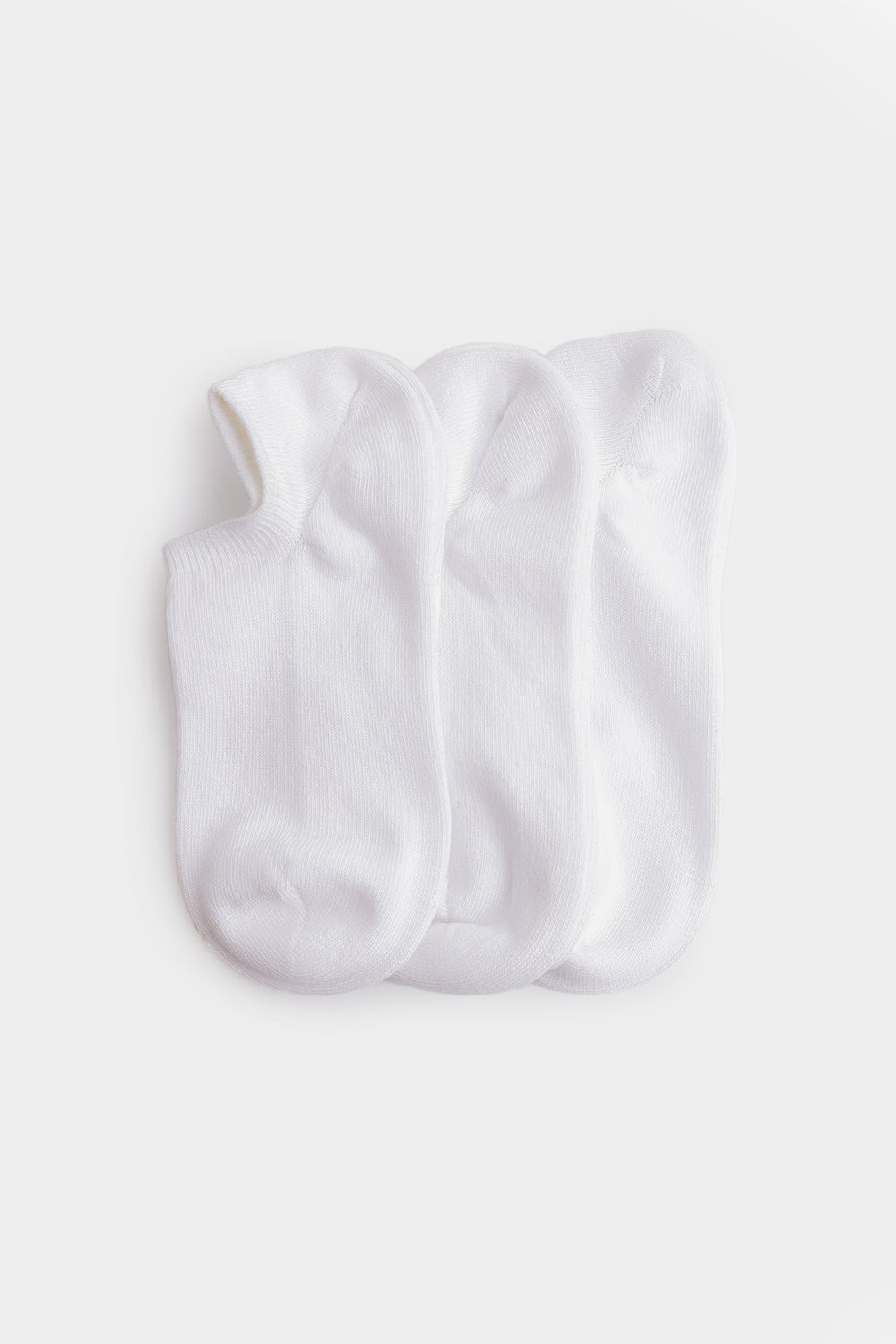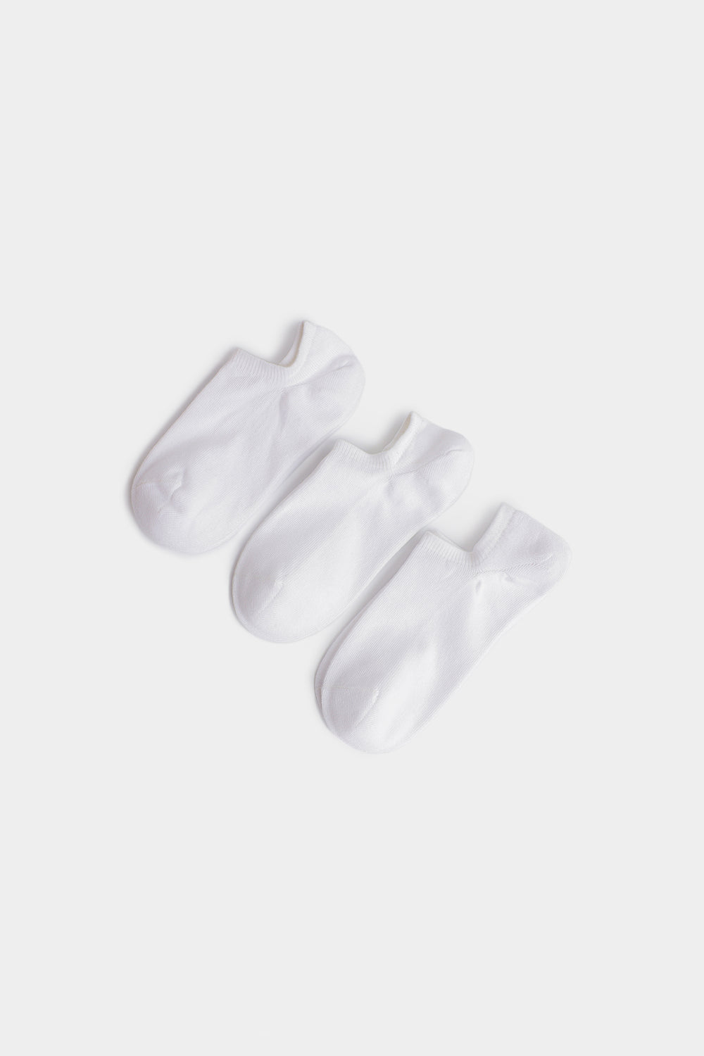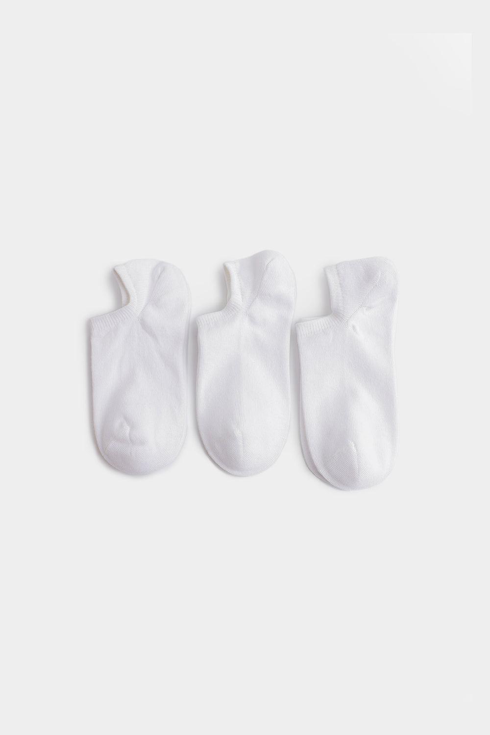White no-show socks designed for a clean, understated look. This three-pack offers everyday comfort and versatility, perfect for wearing with sneakers, loafers, or casual footwear. The breathable fabric keeps feet comfortable throughout the day.