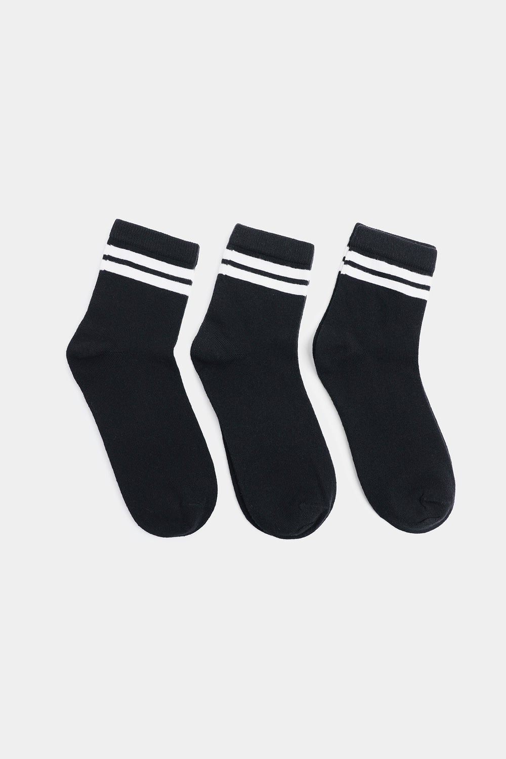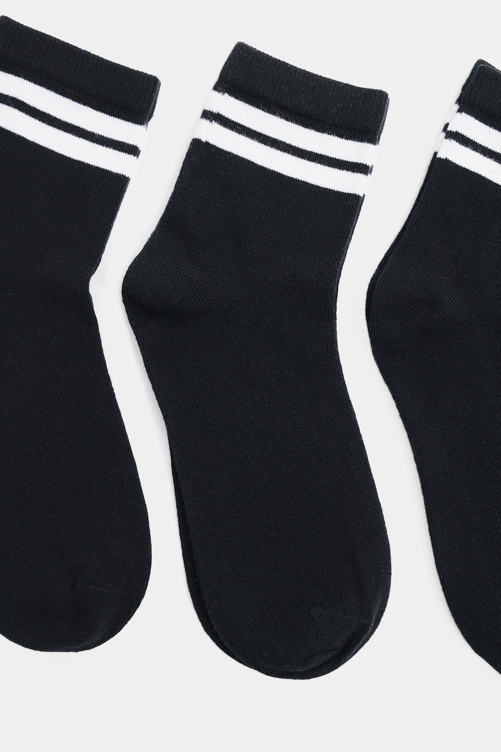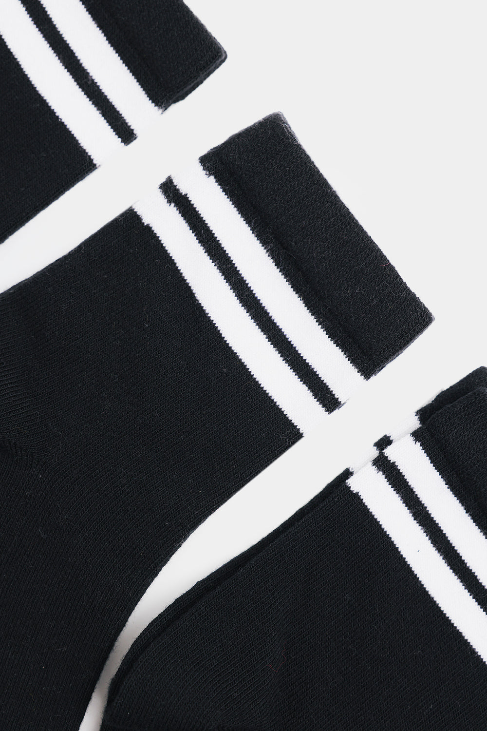 Black ankle socks crafted with a refined silhouette and finished with a distinctive white line border at the cuff. This classic design offers everyday comfort and versatility, seamlessly transitioning from casual wear to smart-casual settings. The contrasting trim detail adds a subtle touch of sophistication.